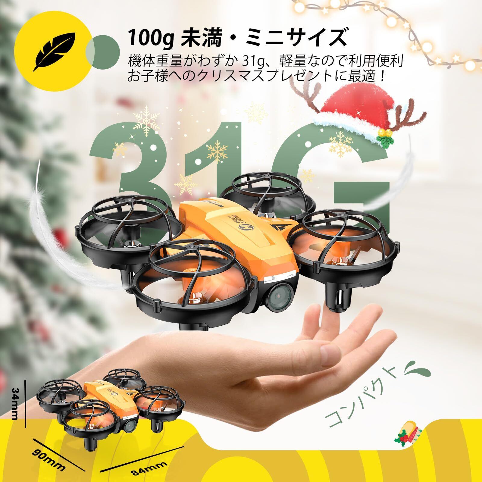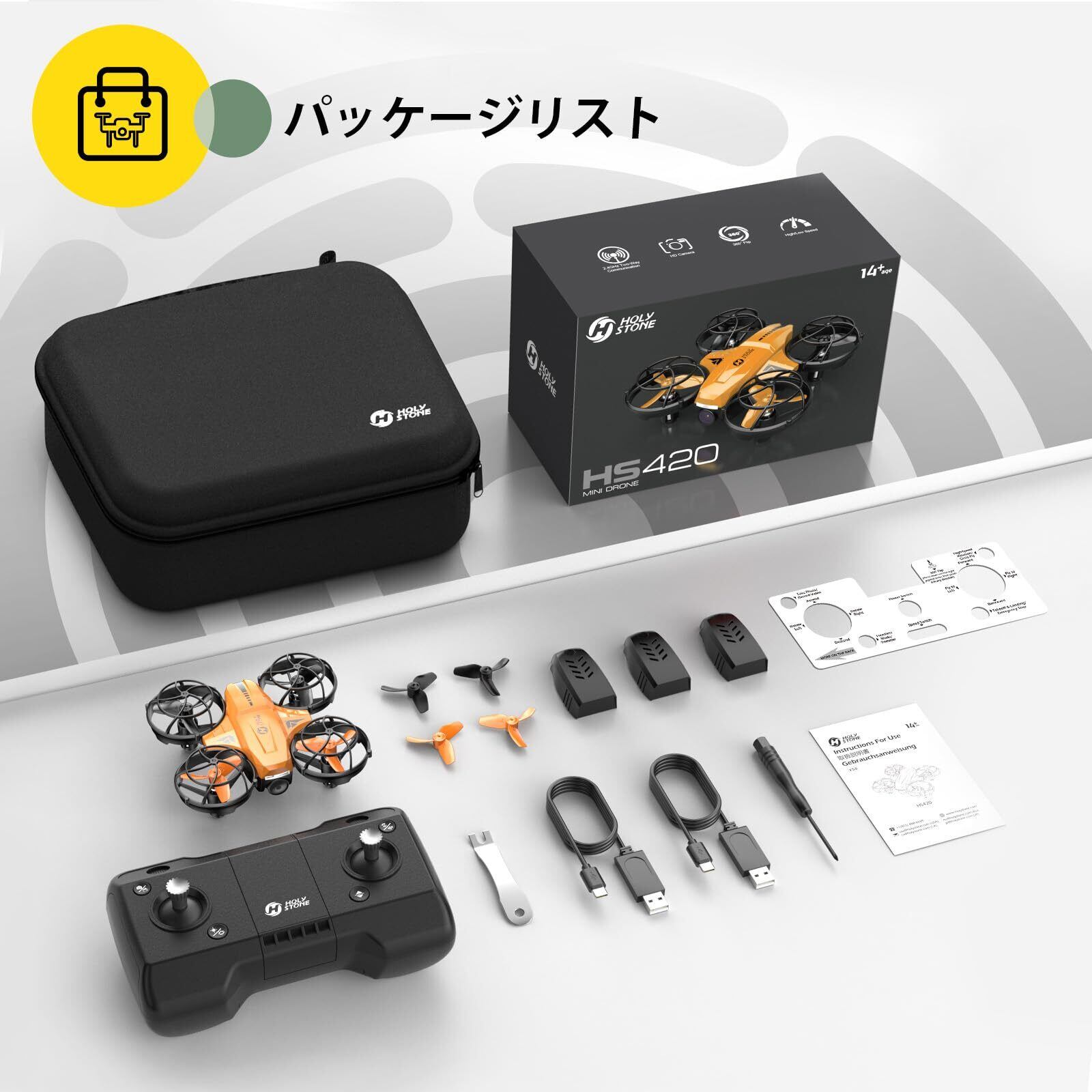 Holy Stone ドローン 100g未満 小型 1080Pカメラ こども向け バッテリー3個 室内 ミニドローン 初心者 子供用 収納ケース付き 手投げテイクオフモード ヘッドレスモード 高速旋回モード 高度維持 2.4GHz 4CH モード1/2自由転換可 国内認証済み プレゼント 小学生 HS420 オレンジ