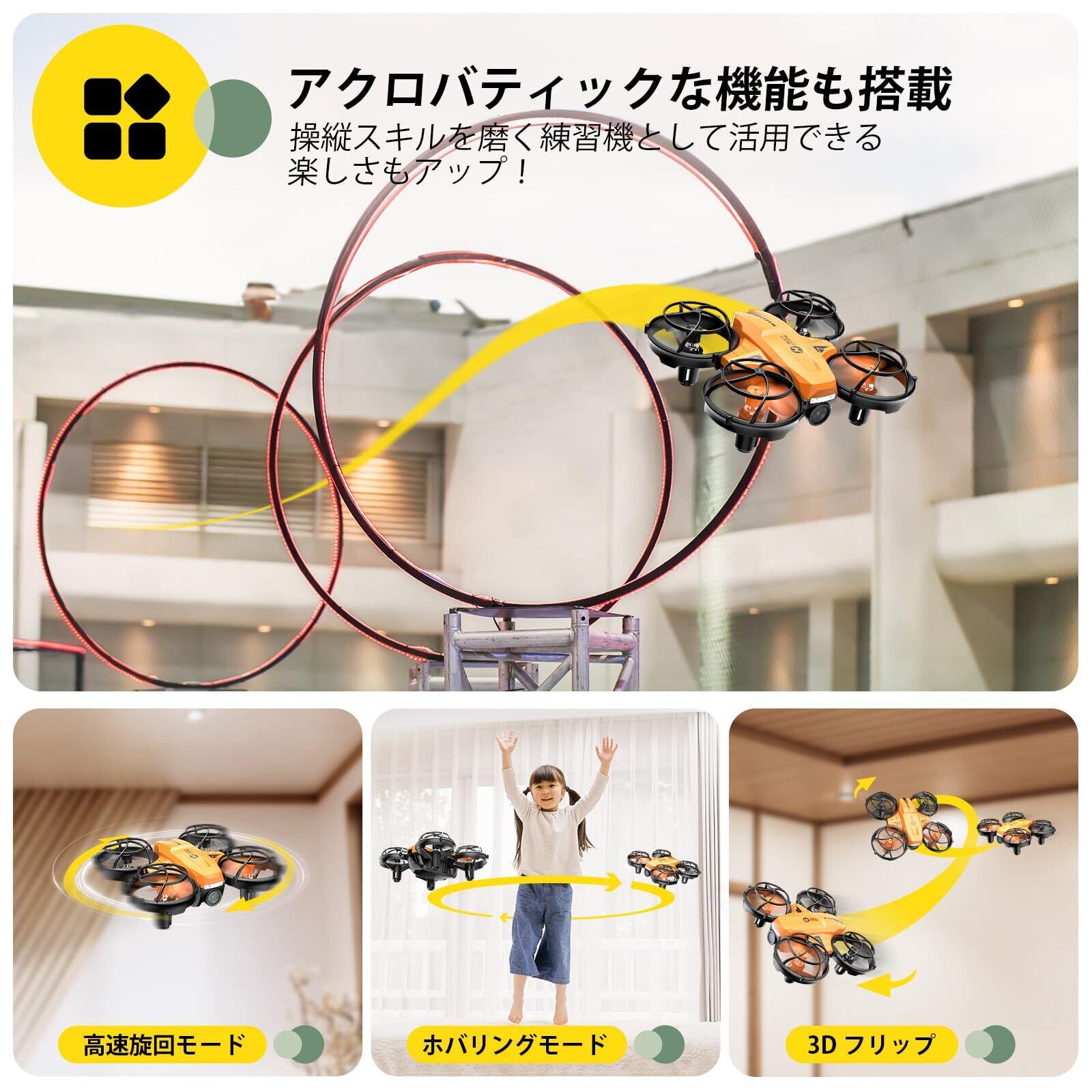 ■【遊び方が広がる多彩な機能!】手投げテイクオフモード、ヘッドレスモード、高速旋回モード、高度維持機能を備えており、思いのままに自在な飛行が可能です。室内でも外でも楽しめ、冒険心を育むドローンです。