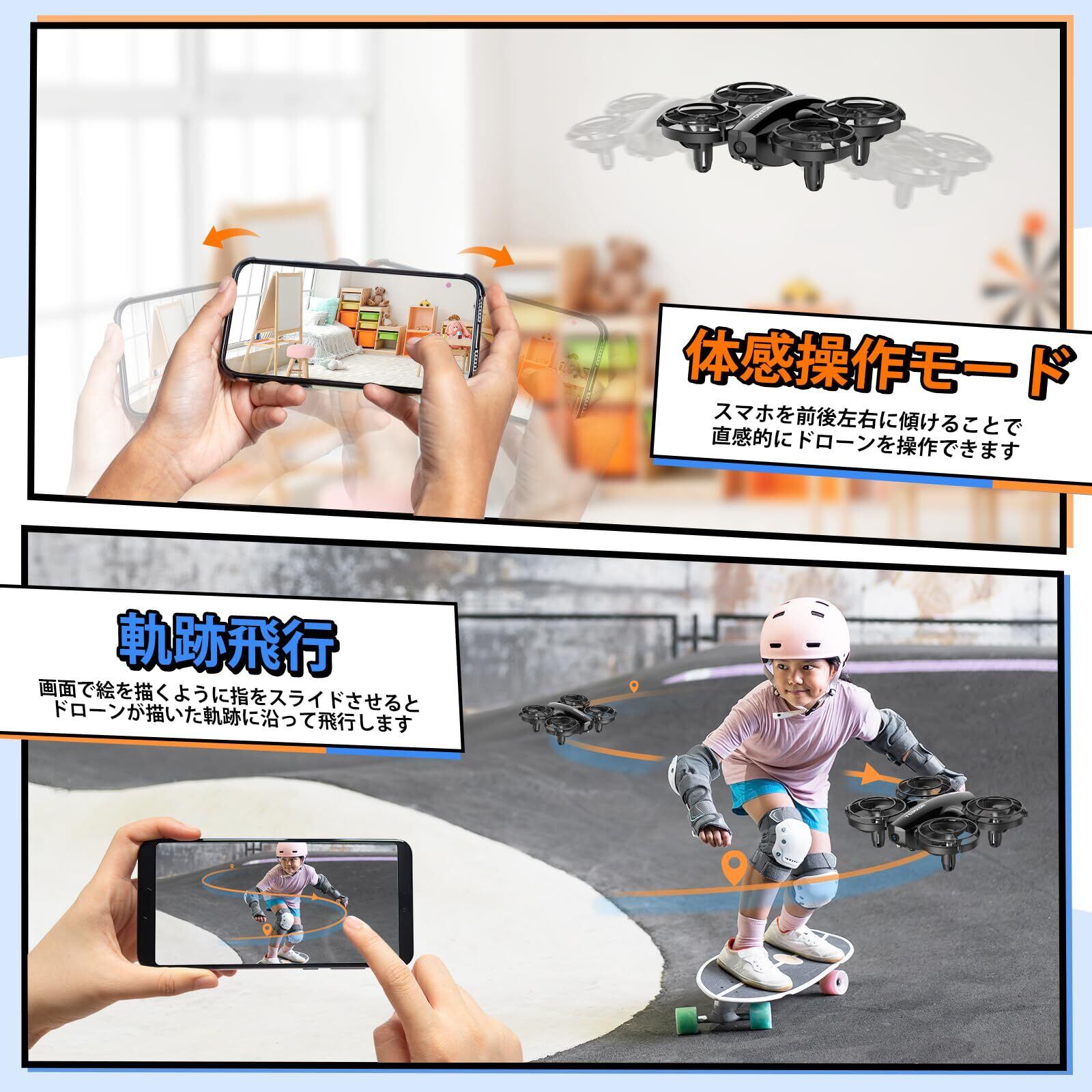 ■【多彩な飛行モードで遊び方が広がる!】高度維持、ヘッドレスモード、ワンキー離着陸、放り投げ飛行、軌跡飛行モードといった多彩な機能を搭載。室内でも外でも自由自在に飛ばせ、子供たちの冒険心を育むことができます。