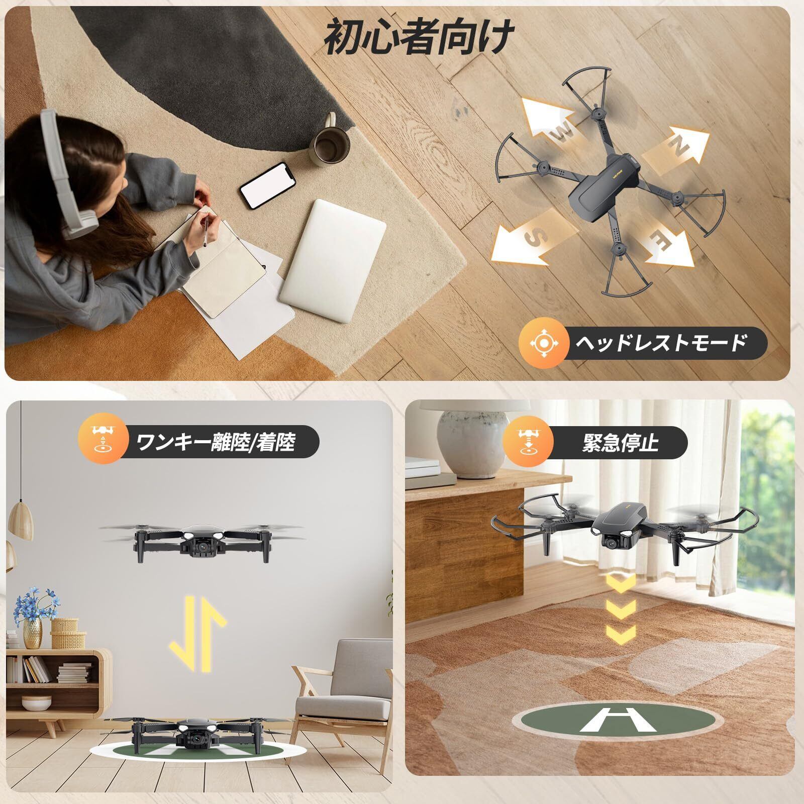 【初心者向け空撮機】この製品にはワンキー離陸/着陸、ヘッドレストモード、高度維持など初心者向けの機能が多数搭載されています。経験のない人でも直感に従って簡単にドローンを操作できます。子供や初心者に最適な入門用空撮ドローンです。