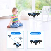 【バッテリー3個付き&3Dフリップ】アップグレードモジュール化バッテリー3.7V 300mAhが3個付き、長時間のフライトを可能にするだけでなく、バッテリーの取り付け、取り外すことがもっと便利になります。リモコンの3Dフリップボタンを押し、またはジェスチャー操作で、ドローンを様々な方向へ360°宙返りできます。