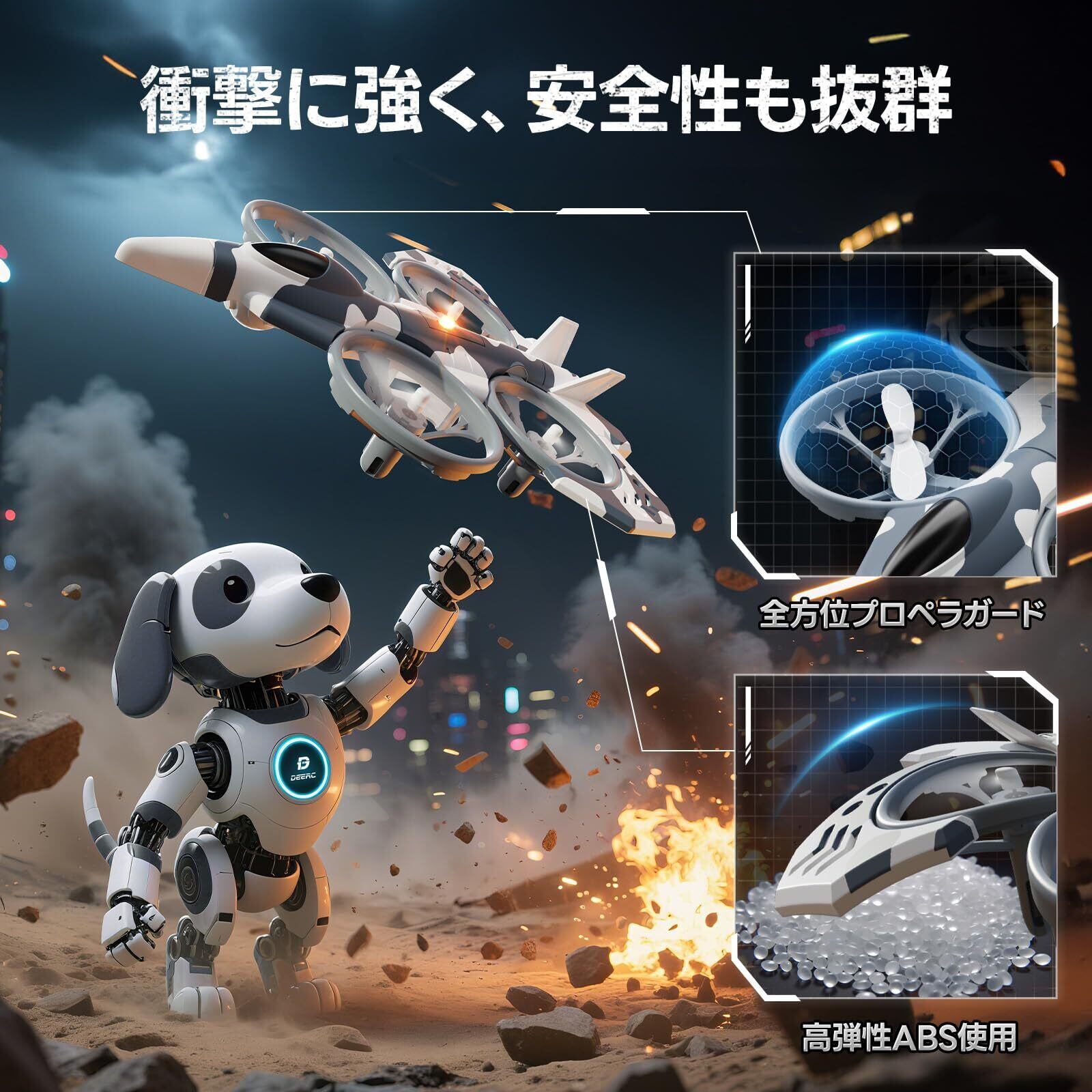 【高い耐久性と安全性】高品質で耐衝撃性のある素材を使用。プロペラ全面ガード付きで、人や物への接触を防止。お子様でも安心してお使いいただけます。