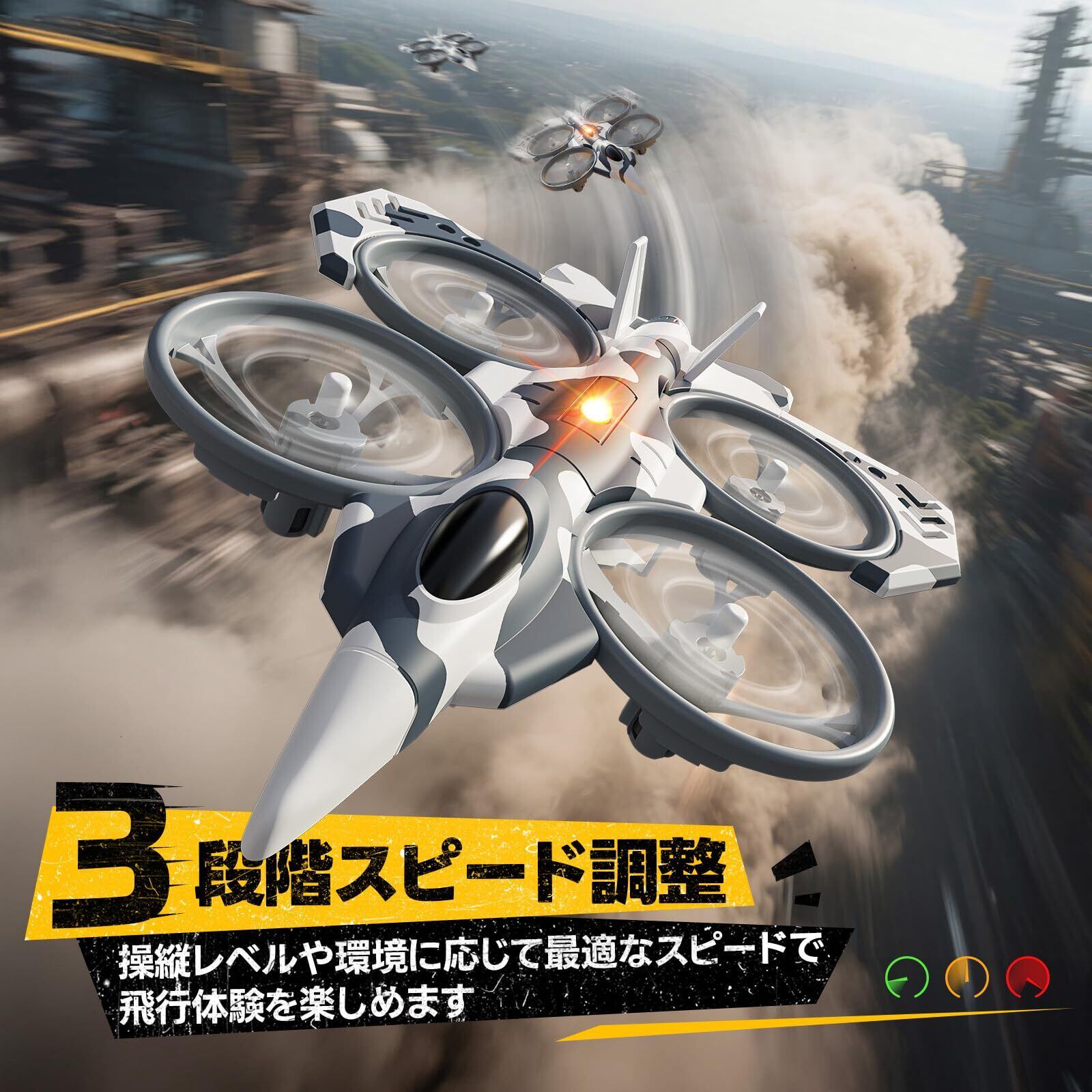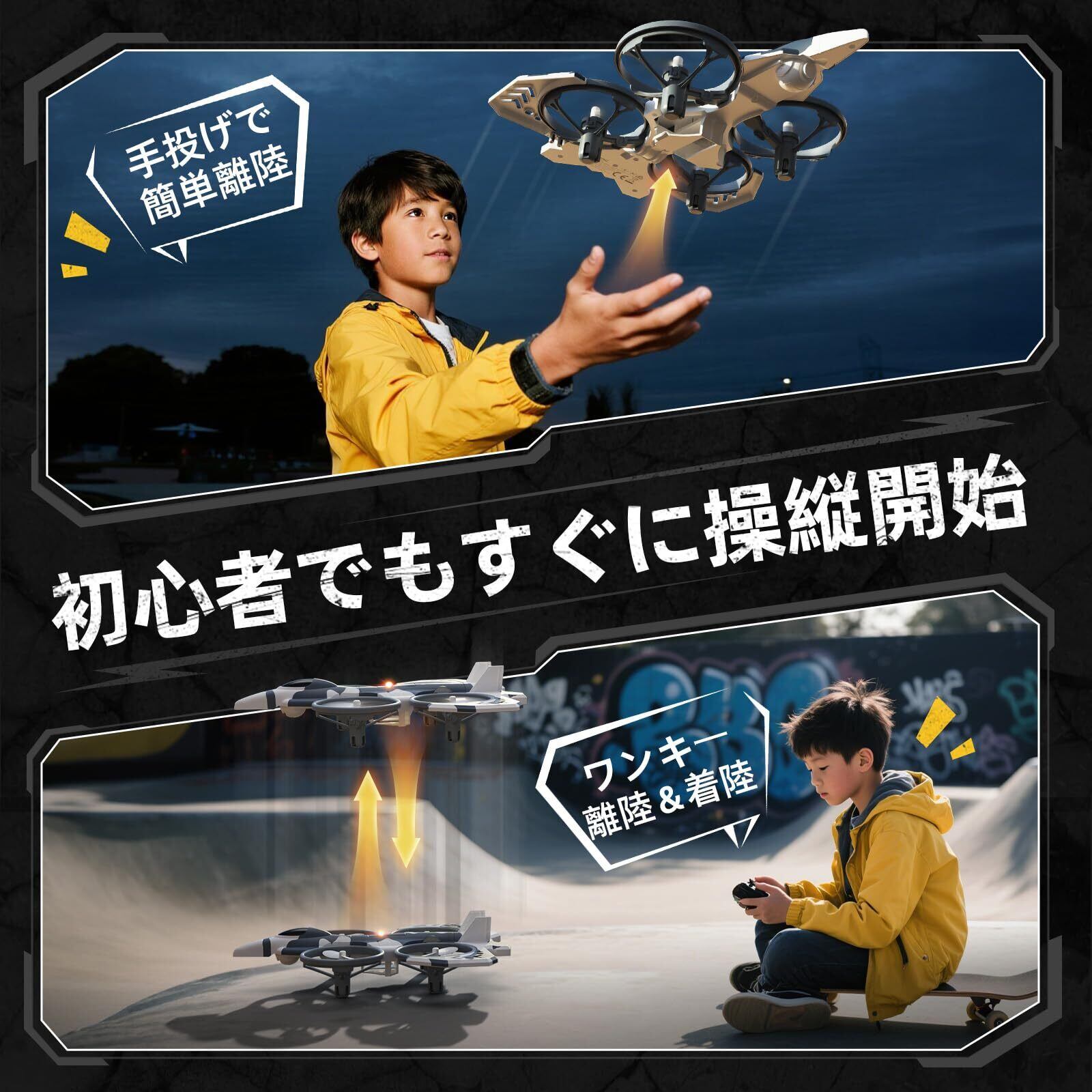 ドローン戦闘機 飛行機 ラジコン 100g未満 陸空両用 免許不要 子供向け Deerc 小型ドローン ヘリコプター おもちゃ 室内 バッテリー2個 14分操作時間 スピード切替 高度維持 ヘッドレスモード 2.4GHz 初心者向け 小学生 誕生日プレゼント 国内認証済み HT15