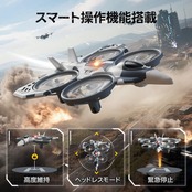 【人気商品】ドローン戦闘機 飛行機 ラジコン 100g未満 陸空両用 免許不要 子供向け Deerc 小型ドローン ヘリコプター おもちゃ 室内 バッテリー2個 14分操作時間 スピード切替 高度維持 ヘッドレスモード 2.4GHz 初心者向け 小学生 誕生日プレゼント 国内認証済み HT15
