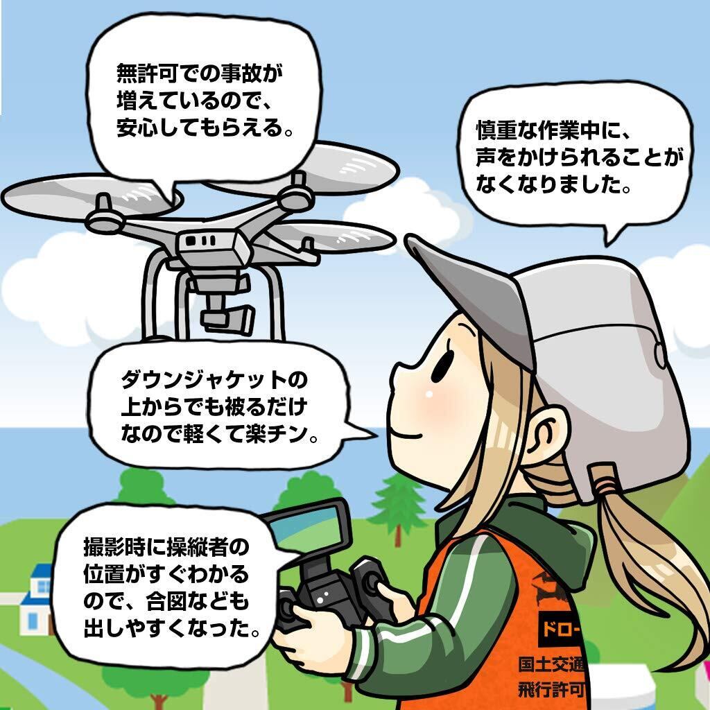 自分が操縦してるとわかりやすくアピールしてくれます。誰が操縦してるかわからない為に通報されたケースなどがありますが、こちらのビブスを着ることで回避することができます。