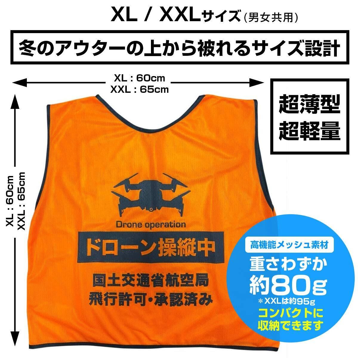 【特別価格】ドローン Habus 無人航空機 操縦用ビブス オレンジ色 XXL DRONE操縦時に安心・安全 ドローン国家資格 無人航空機の操縦者技能証明制度