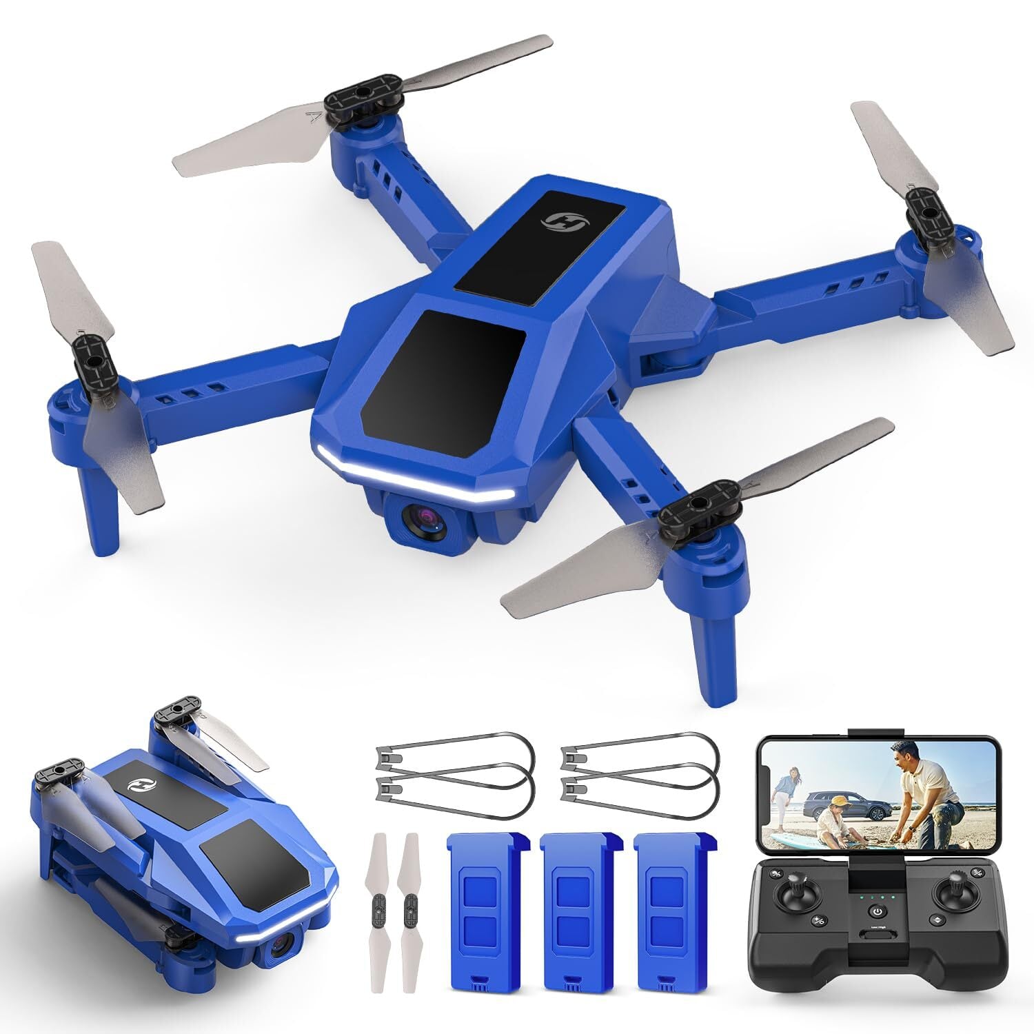 Holy Stone ドローン 100g未満 申請不要 カメラ付き 小型 1080Pカメラ バッテリー3個 39分飛行時間 室内 トイドローン 折りたたみ 初心者向け 手投げテイクオフモード 軌跡飛行モード 360°宙返り 高度維持 2.4GHz 4CH モード1/2自由転換可 国内認証済み 誕生日ギフト 小学生 HS430 ブルー