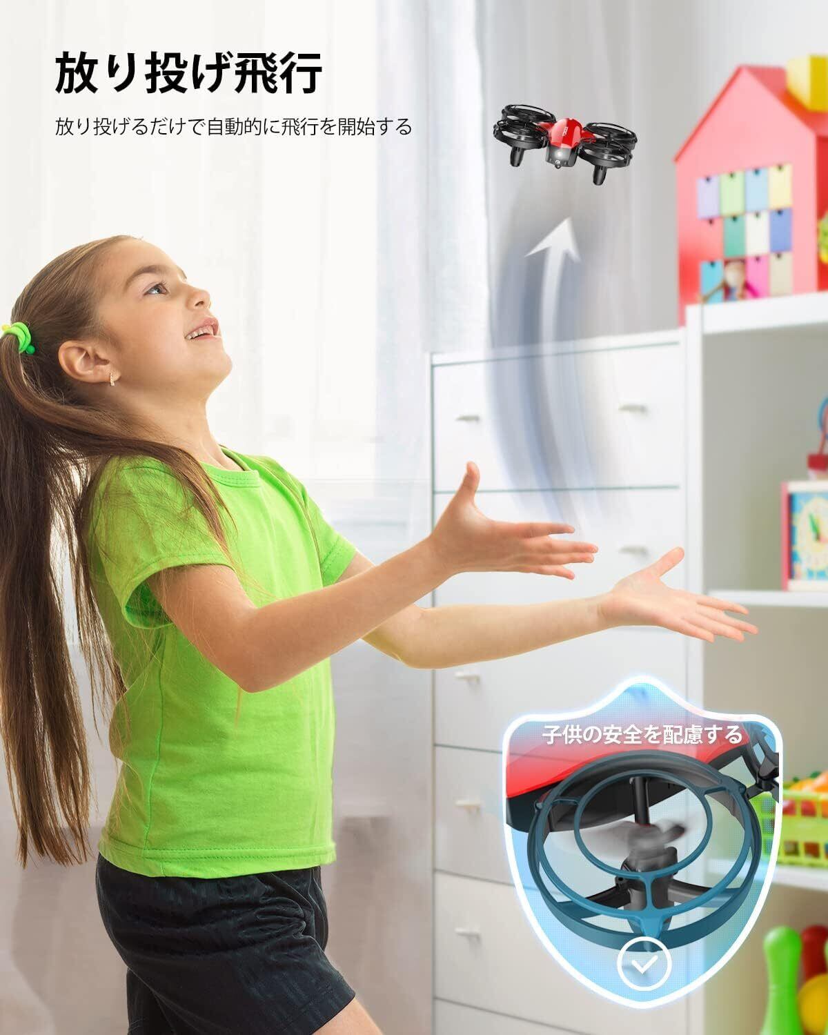 【子供・初心者向け入門機】Tomzon A24 ミニドローンは、手投げ離陸機能により簡単に離陸できるだけでなく、ワンキー離着陸機【安心な360°全方位保護】Tomzon A24 小型ドローンは全保護プロペラガードが付いており、衝突による物損や接触によるケガを最小限に抑えられ、子どもでも気軽に使用できます。手のひらに収まるミニサイズで、遊びに友達や親戚の家に行く際にも持ち運び便利です。能やヘッドレスモード、高度維持機能などの使いやすい機能が装備されています。さらに、対戦バトル機能もあり、兄弟や親子で楽しめるおもちゃとしても最適です。初めてのドローンにぴったりな入門機です。