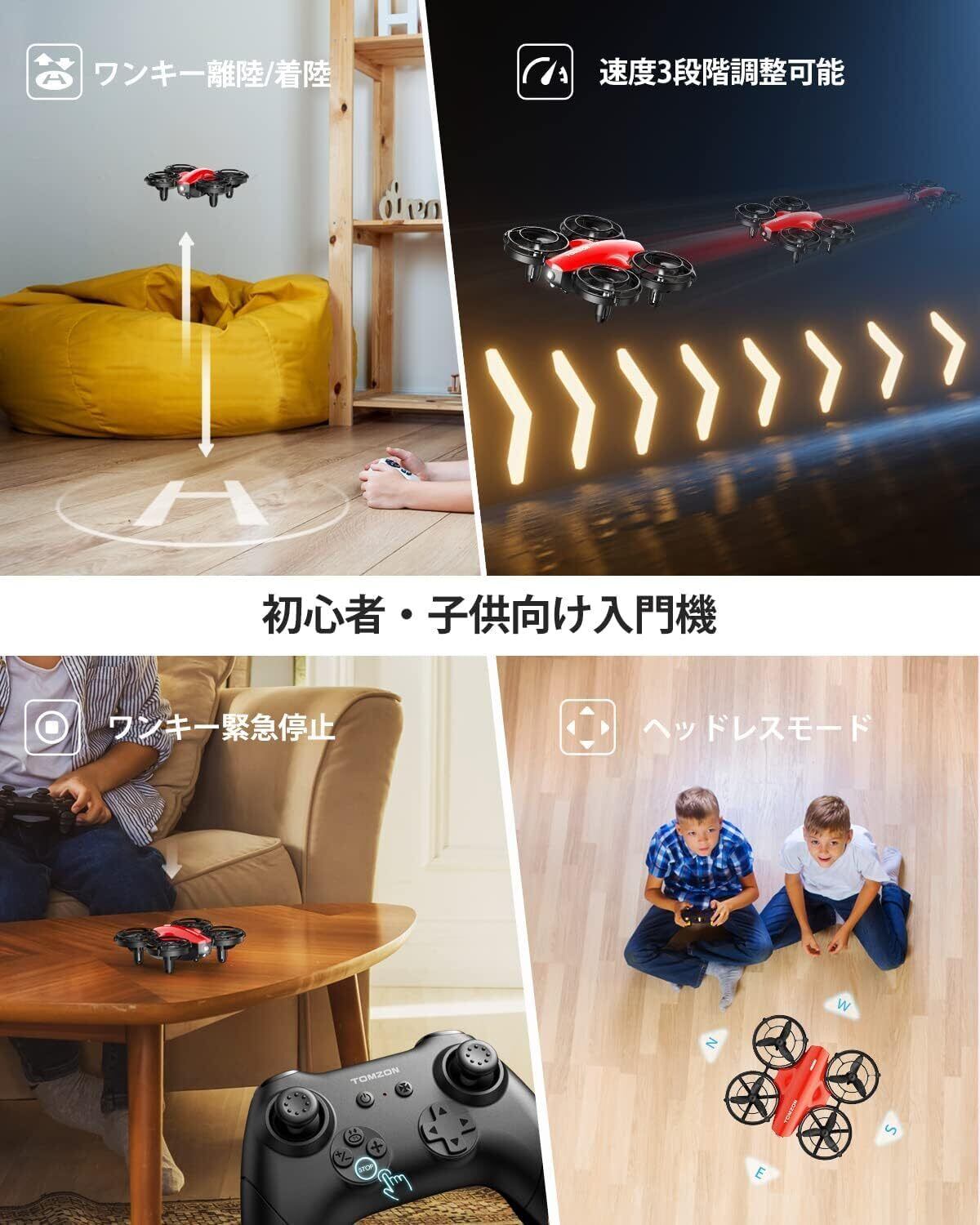 Tomzon ドローン マルチプレー対戦型 子供向け 100g未満 24分飛行時間 初心者 室内 バッテリー3個 トイドローン ワンキー離着陸 放り投げ飛行 ヘッドレスモード 高度維持 宙返り サークル飛行 高速回転 プレゼント 国内認証済み A24 赤