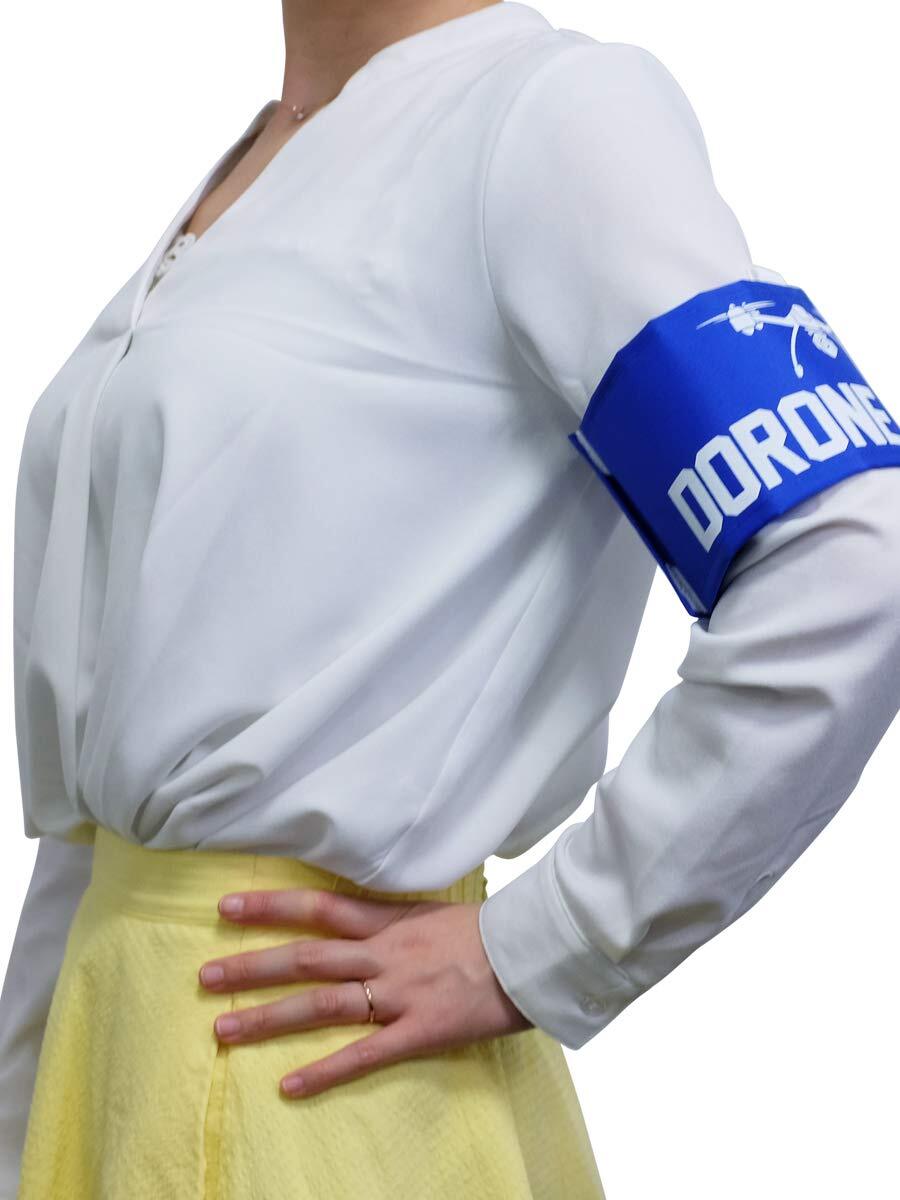 【特価セール】【限定】NEWデザイン 腕章専門.com ドローン操縦用腕章 日本製 ビックシルエット 簡単装着 撥水加工 マジックテープ&安全ピン 青色