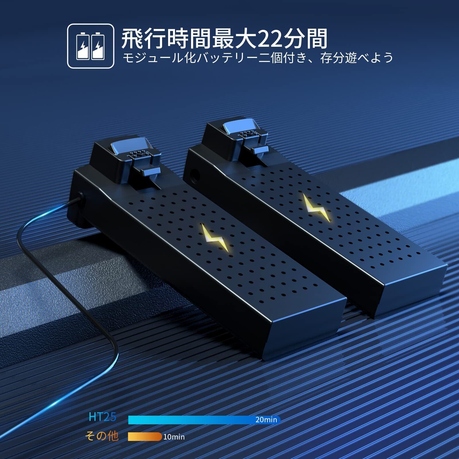 ️【バッテリー2個】大容量モジュールバッテリー2個付き、飛行時間22分間に伸びます。より長い時間空中にとどまり、長いゲーム時間を楽しむことができます。充電がもっと安全になり、取付、取外すがもっと便利になります。