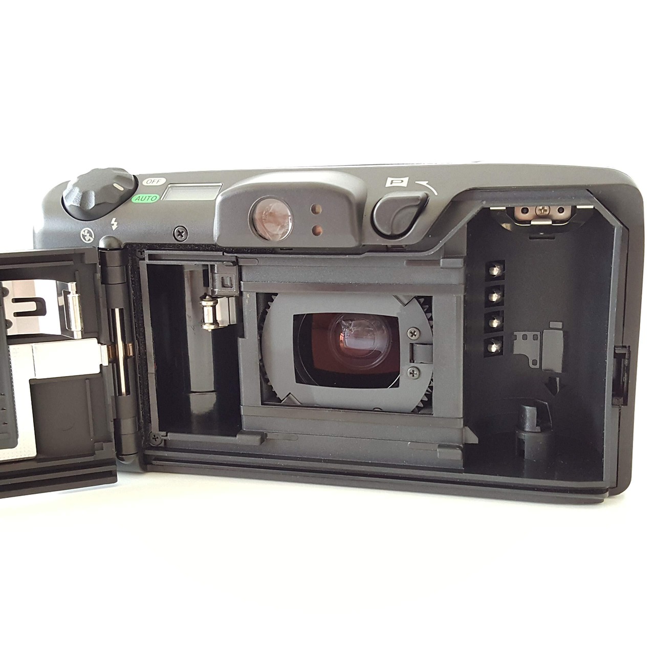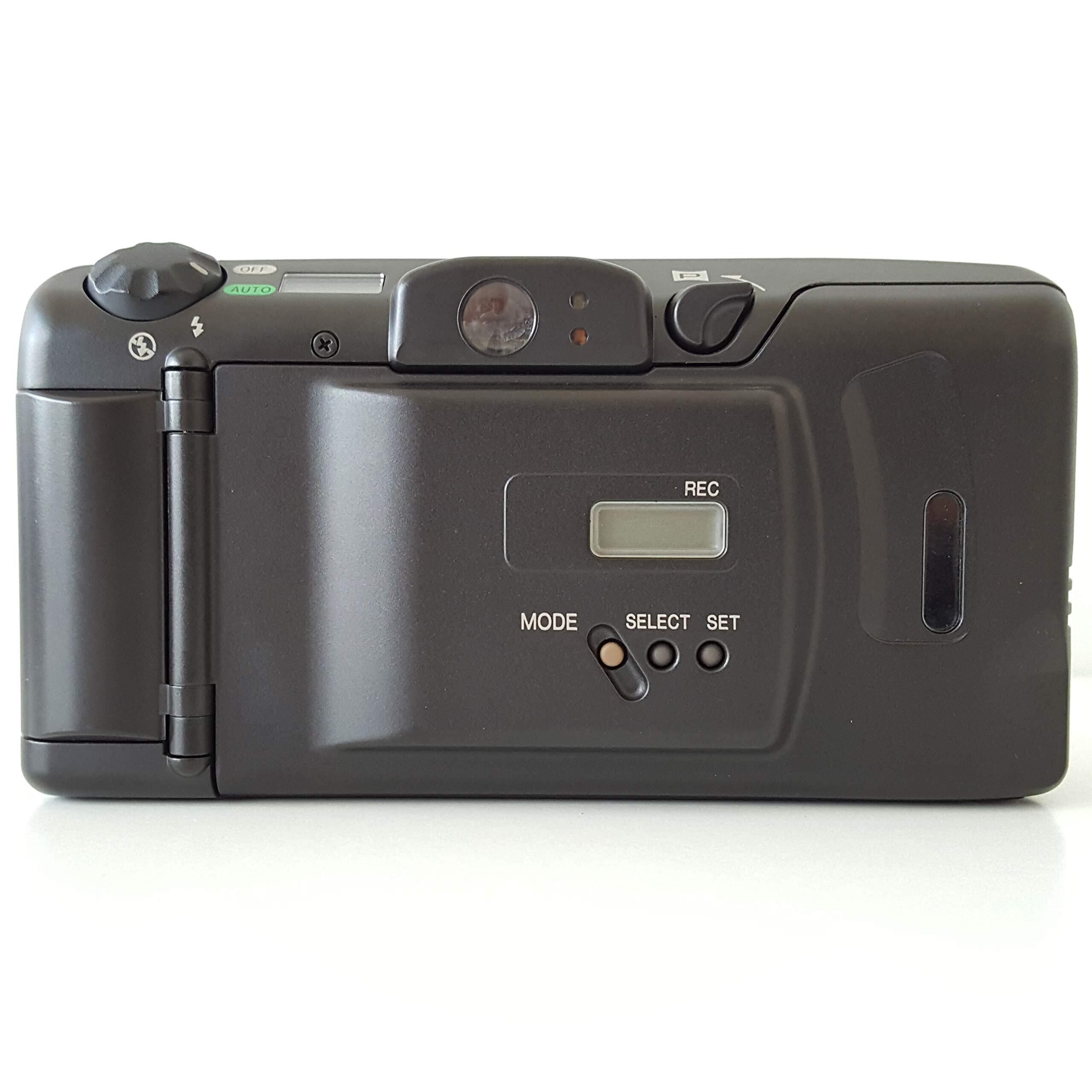 オートボーイルナシリーズの高級機。38-105mmの2.8倍ズームレンズを搭載したオートフォーカス35mm全自動ズームコンパクトカメラ。シルバーメタリックと黒のツートンカラーのボディ。3点測距のAi-AF搭載。2枚の非球面レンズ使用による高画質。モードダイアルによる簡単操作。RT(リアルタイム)シャッターモードによる素早いシャッター。パノラマでもデート写し込み可能など盛りだくさんの機能を実現した。 【製品仕様】 ●焦点距離:38-105mm ●F値:F3.8-9.9 ●焦点調節:アクティブ3点測距AiAF ●最短撮影距離:0.6m ●パノラマ対応:○ ●リモコン対応:× ●電源:CR123A×1 ●大きさ:123×64×50 ●質量(電池別):255g