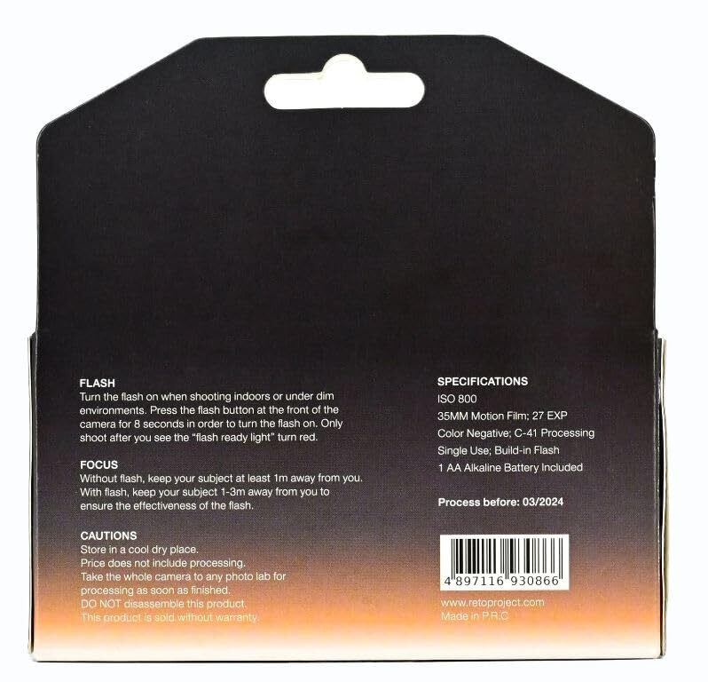 【特価セール】RETO Amber 35mm 使い捨てフィルムカメラ (Tungsten)