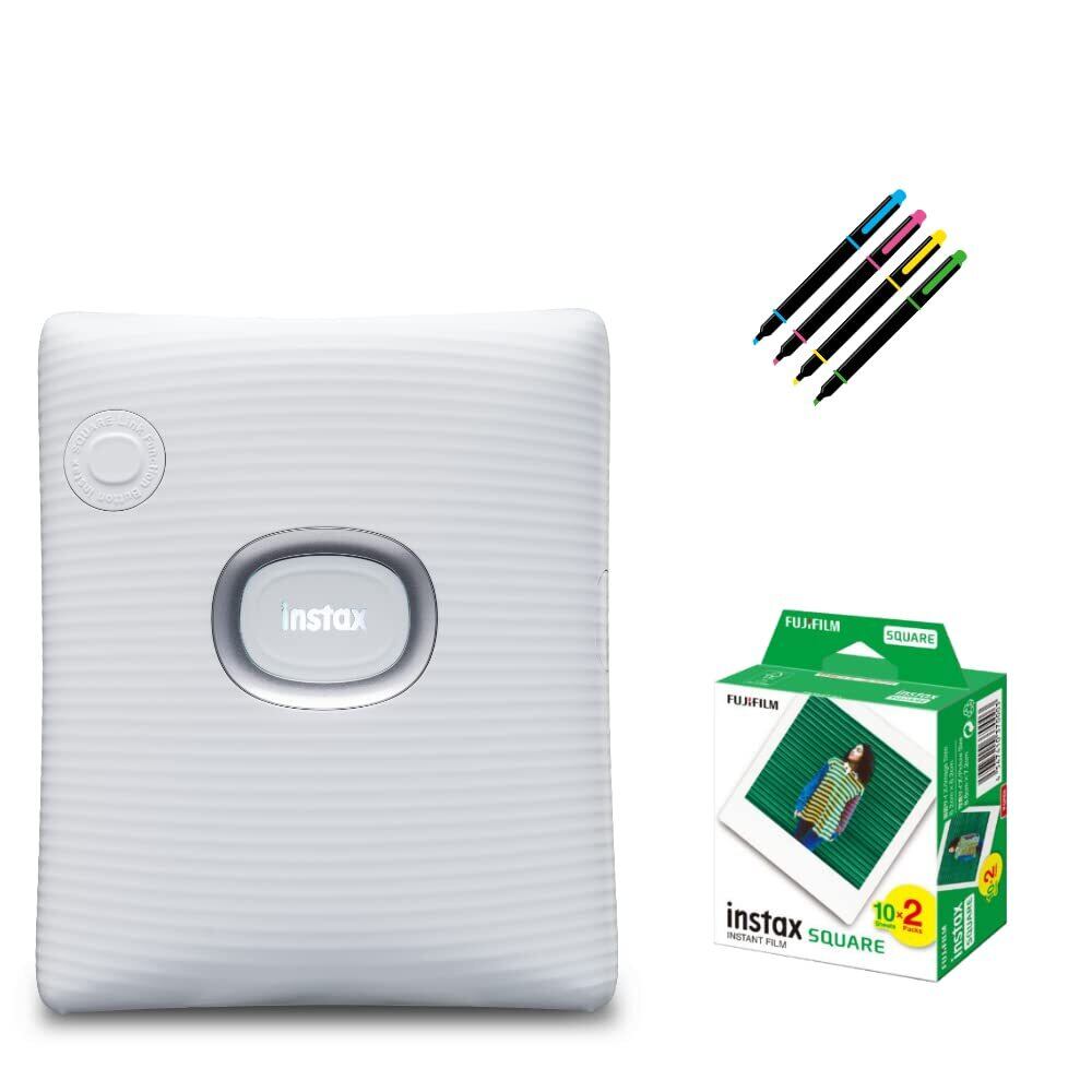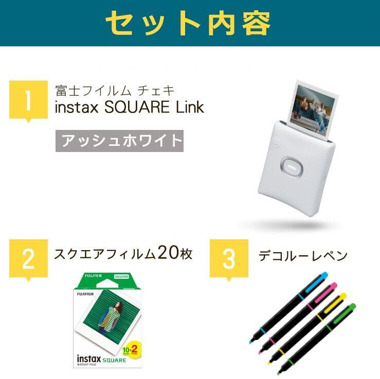 【在庫限り】チェキ instax SQUARE Link スクエアリンク ましかくチェキ (フィルム20枚&ペン, アッシュホワイト)