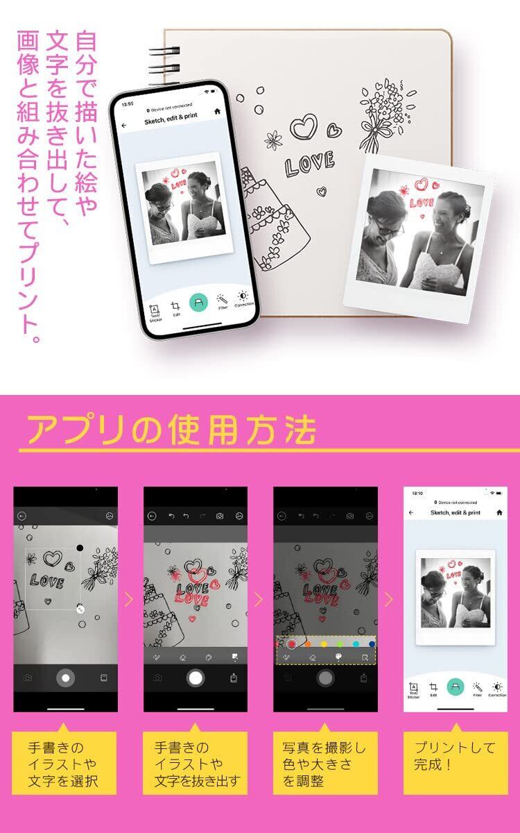 ■【クリエイティブな楽しみを広げるペン付き!】付属のペンを使って、写真にメッセージやデザインを加えることで、個性的な作品を作ることが可能です。友人への贈り物や、特別なイベントに最適なアイテムです!