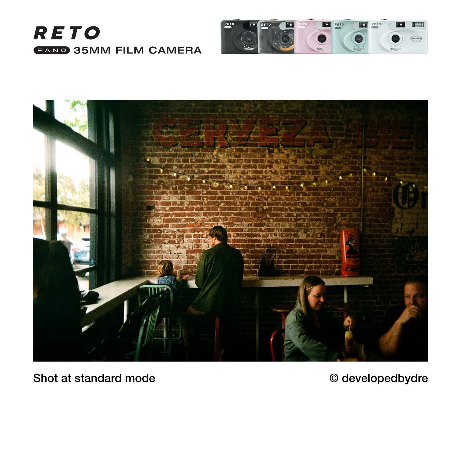 RETO PANO 35mmフィルムカメラ - 22mm広角レンズ、パノラマ、簡単スイッチ、シネマティックモード、レンズカバー、内蔵フラッシュ、再利用可能(フィルムと単4電池は付属していません) (シアーホワイト)
