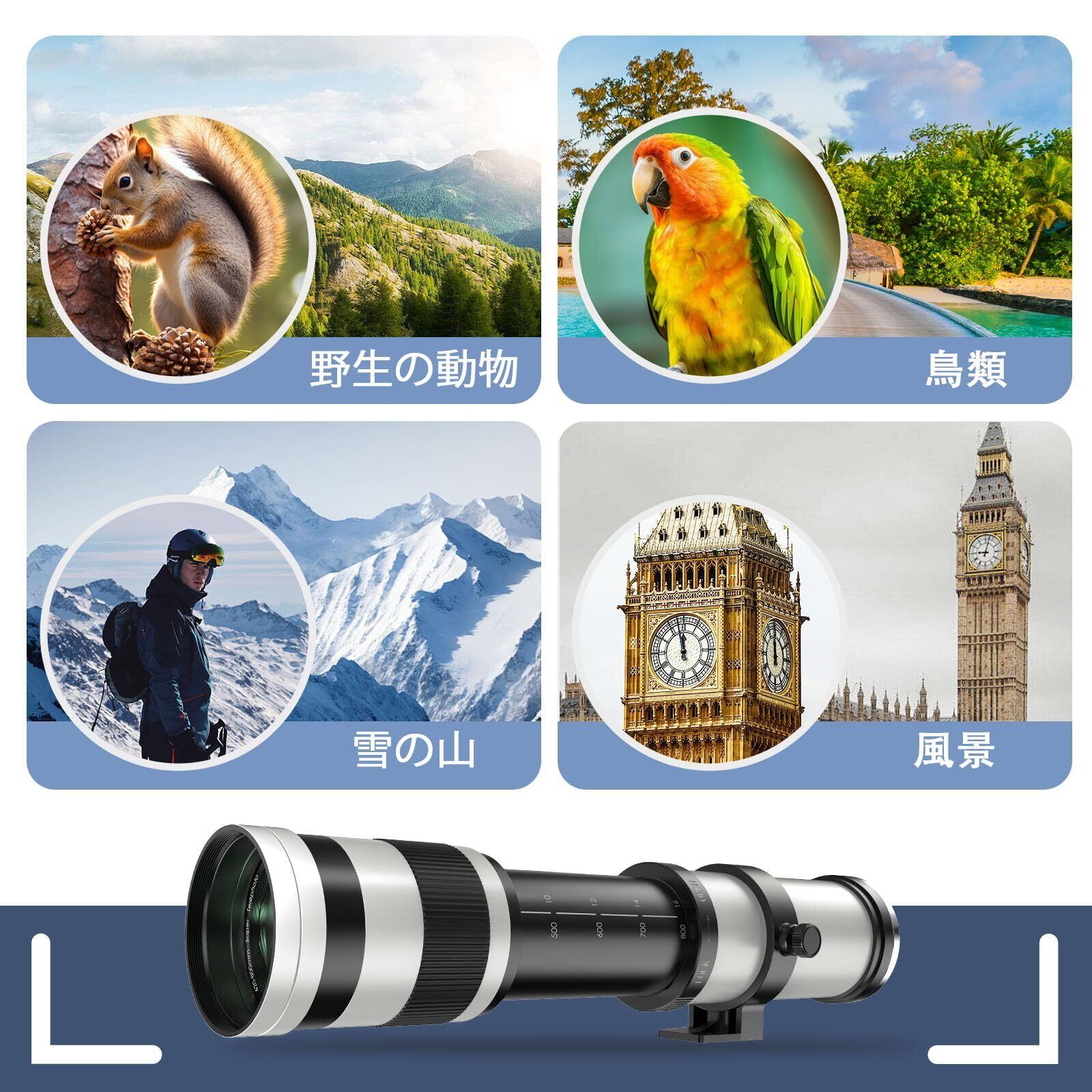 【フルマニュアル望遠レンズ】:420-800mm望遠レンズ、アダプターリング不要、2秒の高速レンズ取り付け。レンズ装着後、デジタル一眼レフカメラでフルマニュアルフォーカス操作を行う必要があります: 1、Mモードに調整して使用する。2、レンズのフォーカスリングをひねってピントを合わせ、ISOとシャッタースピードを調整する。(レンズの絞りは調整できず、焦点距離によって変化する)。マニュアルレンズを使用することで、画像を完全に創造的にコントロールすることができ、比類のない創造的な表現力と多様性が得られます;