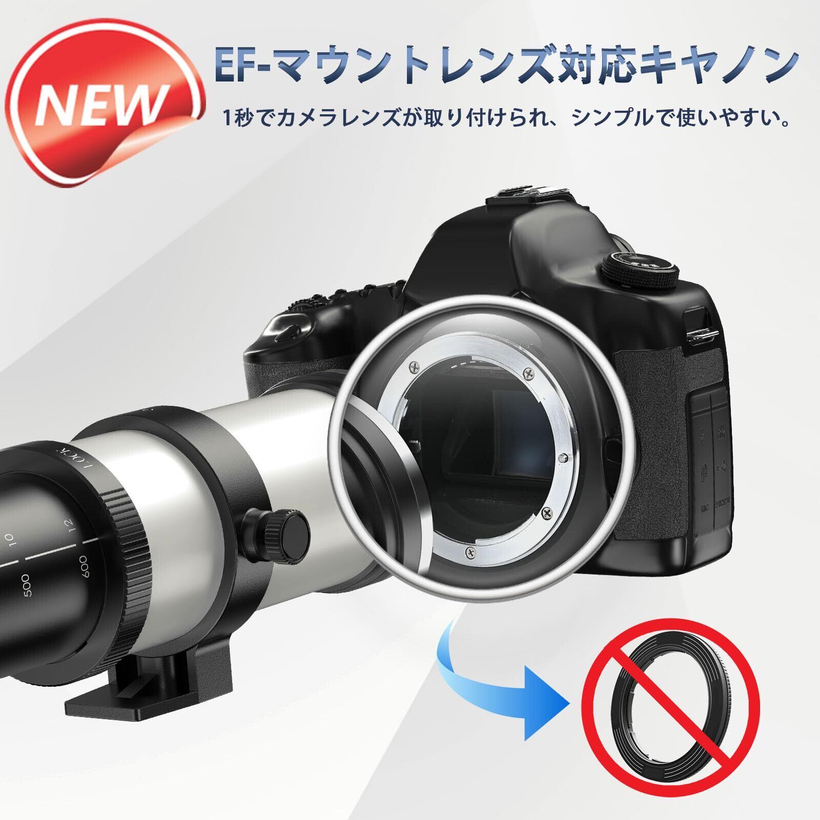 【対応キヤノンEF レンズ】: EF望遠レンズは、とらえどころのない野生動物、鳥、月、その他の遠くの風景や小物の撮影に最適で、これまでにない距離まで被写体に近づけます。対応 EFレンズ Canon EOS Kiss X10i X10 X9i X9 X8i X7i X6i X5 X4 X3 X2 X90 X70 X50;Kiss Digital、Digital X、Digital N、Kiss F;EOS 10D 20D 30D 40D 50D 60D 70D 80D 90D 100D 200D 250D 300D 350D 400D 450D 500D 550D 600D 650D 700D 750D 800D 850D 1000D 1100D 1200D 1300D 1500D 2000D 3000D 4000D 9000D/77D 760D/8000D 1D X Mark III/II/1DX、5D Mark IV/III/5DS/5DS R、6D Mark II/6D、7D Mark II および他のefカメラ;