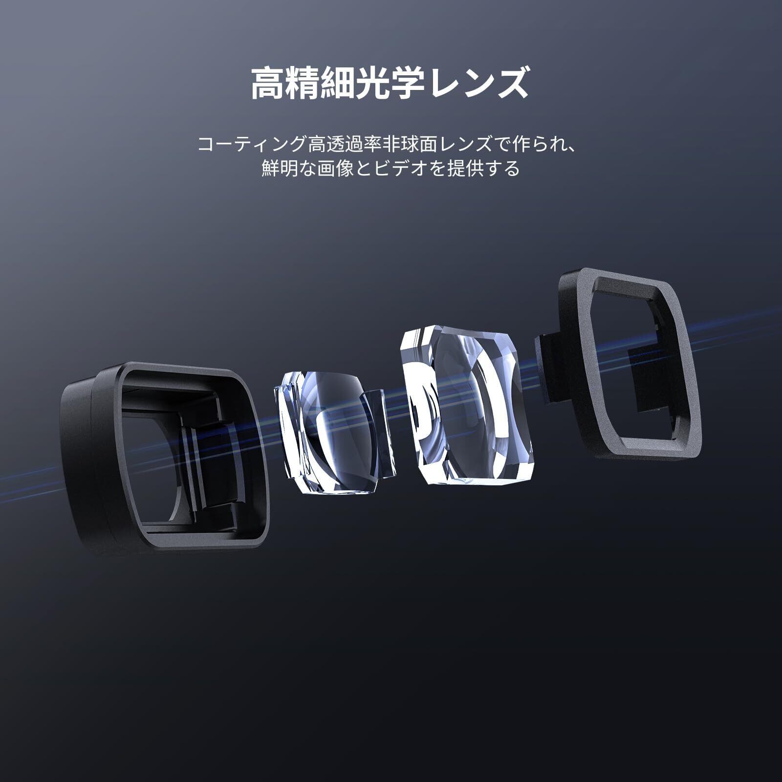 【高画質&軽量】コーティングされた高透過率非球面レンズで作られた広角レンズは3.9gと軽量でありながら、クリアな画像と動画を提供します。