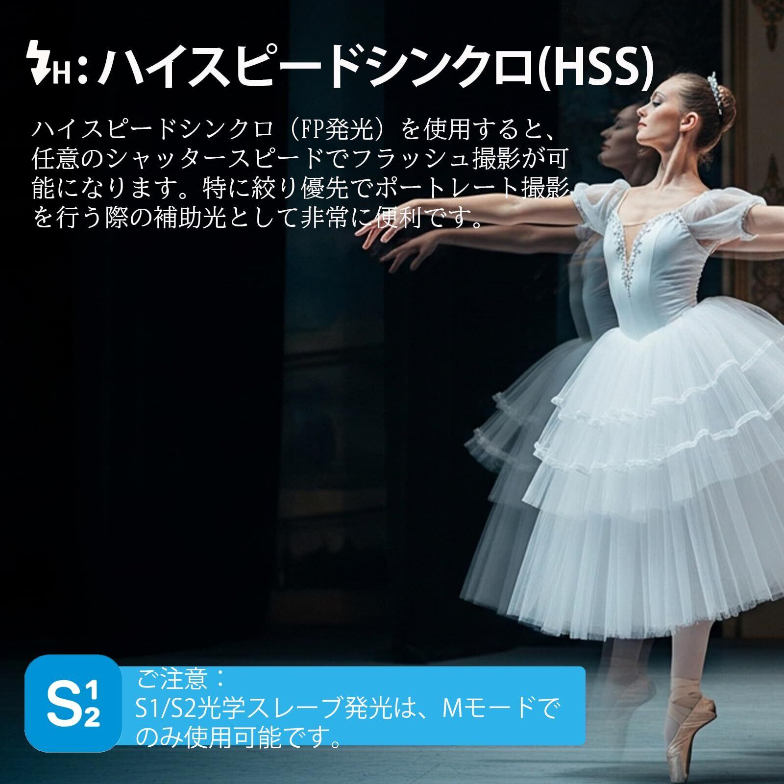 ■【便利な2.4G無線機能!】2.4G無線でのマスターおよびスレーブモードに対応しており、複数のフラッシュを同時に操作することが可能です。S1/S2光制御機能を備えているため、柔軟なライティングが簡単に実現できます。