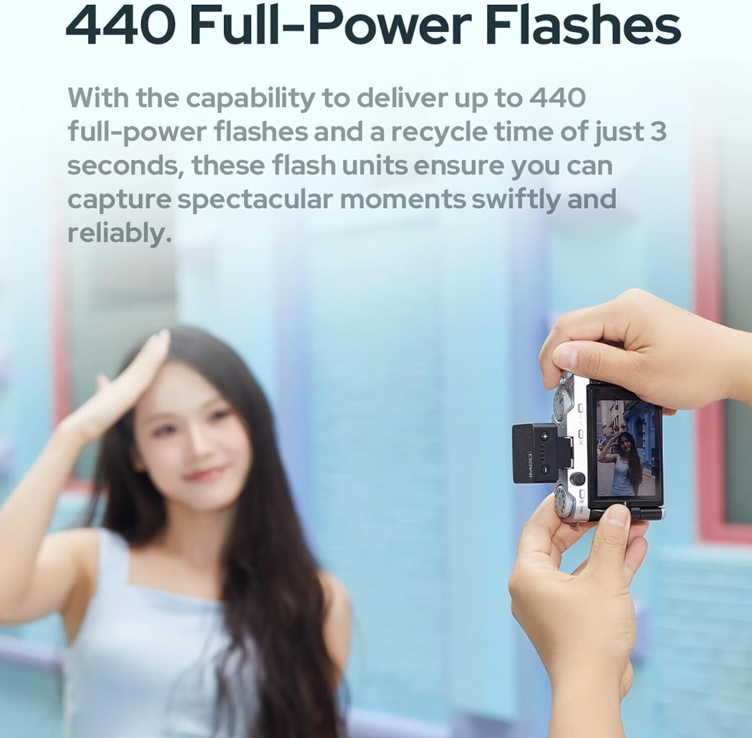 フルパワー フラッシュ 440 回: iM20 は最大 440 回フルパワー フラッシュし、リサイクル時間は約 3 秒で、応答が速く、いつでもその瞬間を捉えることができます!