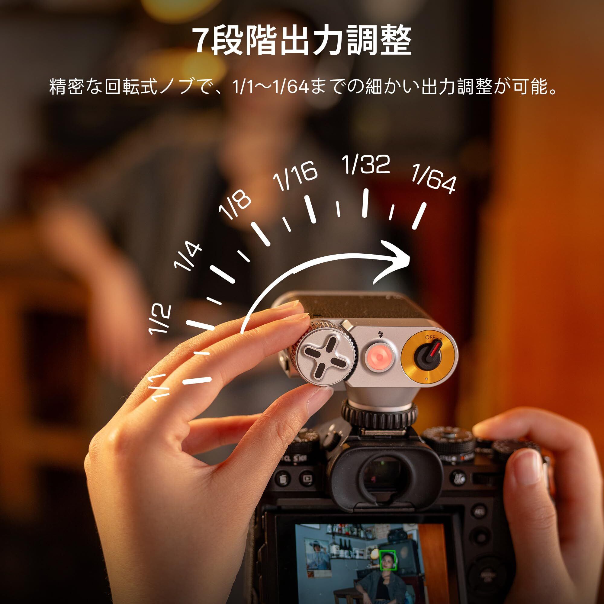 高性能なフラッシュ機能:GN12(ISO100)の高出力を実現し、1/1から1/64までの7段階で出力調整が可能です。 色温度は6500K±200Kで、被写体を自然な色合いで照らします。また、S1/S2の光制御モードにも対応し、多様な撮影シーンに柔軟に対応します。