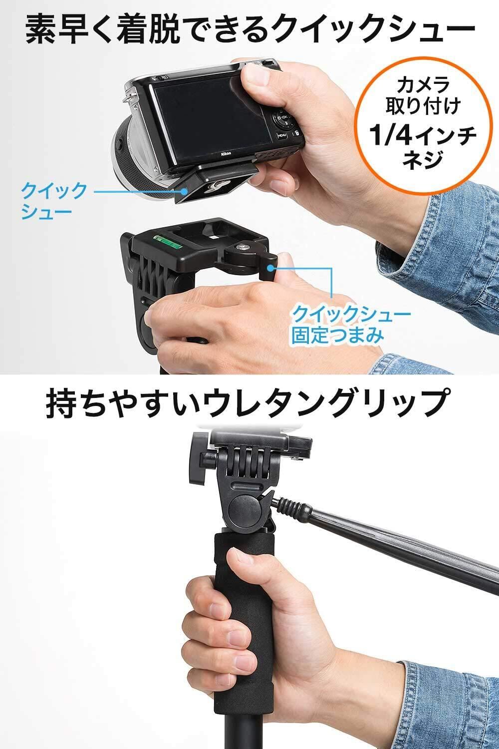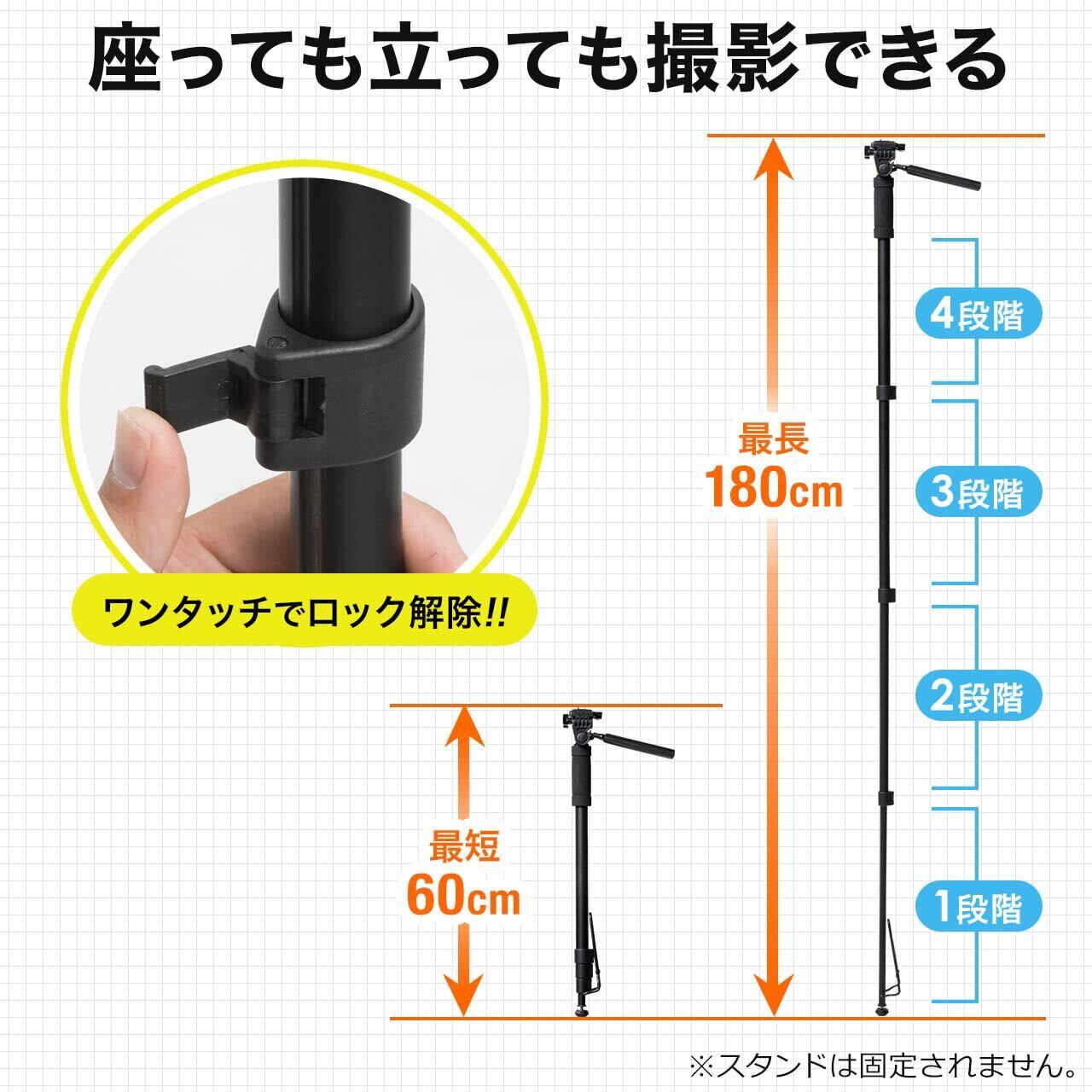 サンワダイレクト カメラ一脚 雲台付 4段伸縮 60~180cm クイックシュー 収納袋付き 2WAY設置 200-DGCAM016