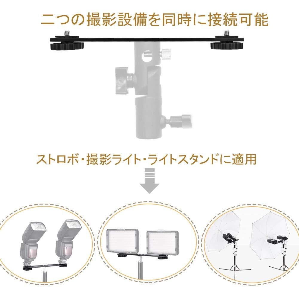 【自由に調節】カメラ シューブラケットの双頭は標準1/4 "ネジ付きのホットシューデザインで、4cmから18cmまでの間に距離を自由に調整できます。
