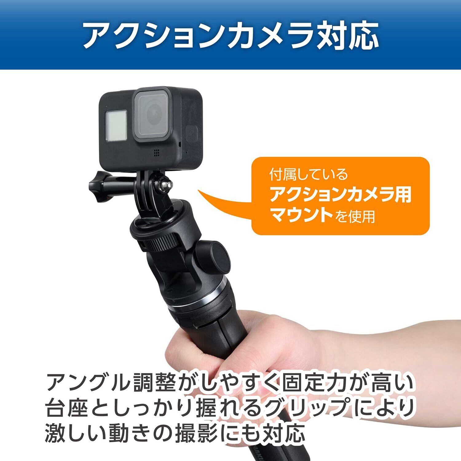 脚をたたんで自撮り棒やグリップとしても使え、アクセサリーシューを備えたスマートフォンホルダーと、アクションカメラ用マウントが付属。