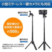 持ち運びに便利なコンパクトなサイズながら、小型ミラーレス一眼カメラにも対応するしっかりとした造りの3WAYマルチ撮影スタンド。