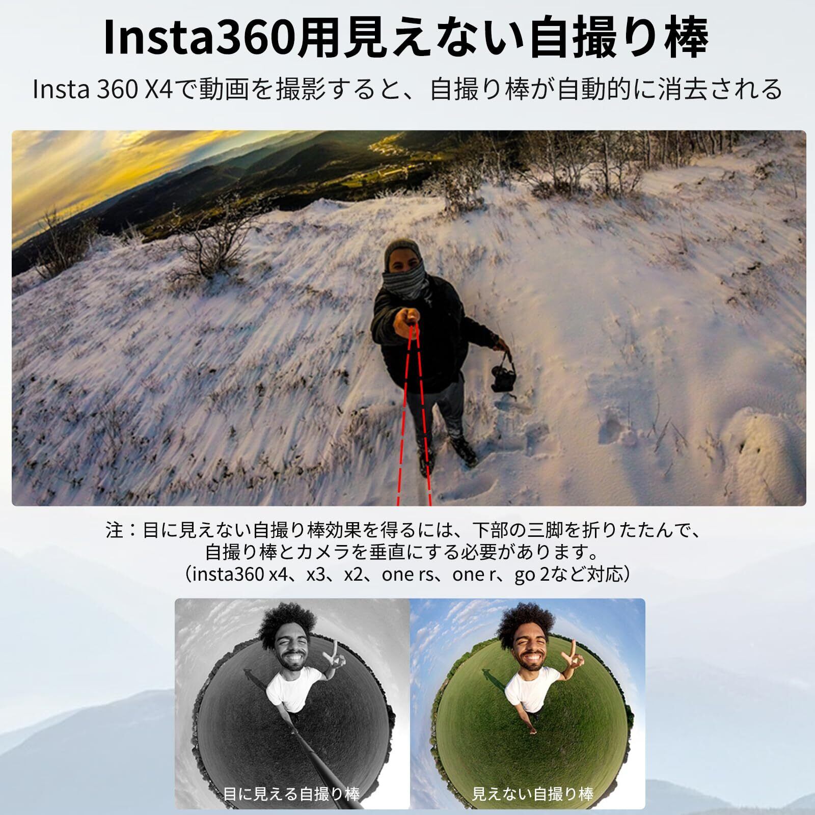 「三脚と見えない自撮り棒」:VRIG三脚は折りたたむ三脚と自撮り棒を一体化にしたデザイン、自撮り写真、旅行用コンパクト三脚、第三視点撮影など広く使われております。Osmo 360 パノラマカメラを使えば、自動処理で写真や映像から自撮り棒を消すことも可能です。