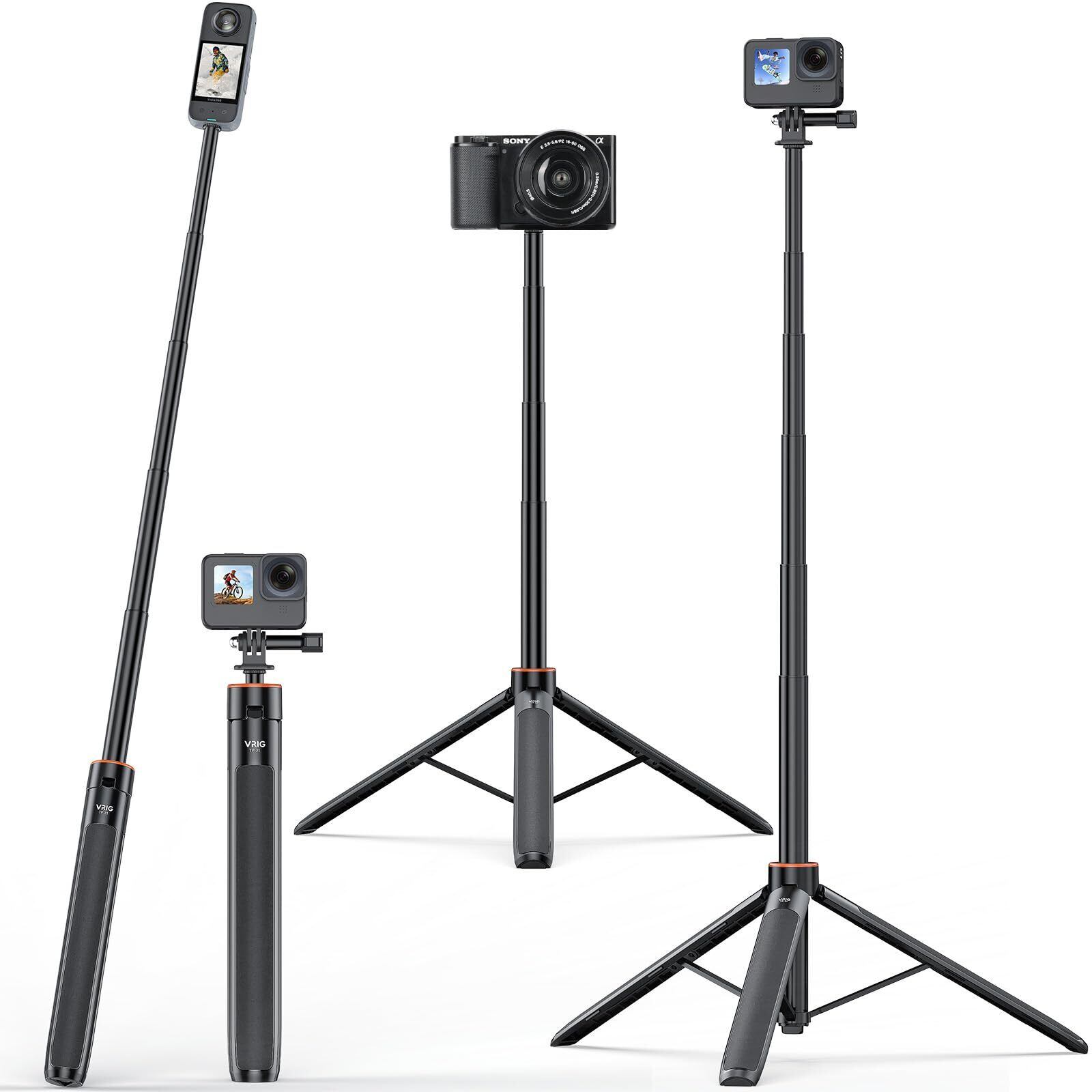 VRIG 三脚 アクションカメラ 140CM 見えない自撮り棒 Insta360 カメラ三脚 セルカ棒 軽量 コンパクト 6段伸縮 VLOGアクセサリー Insta 360 X5/X4/X3/AcePro/AcePro2/GoPro13/12/11/10/DJI Osmo Action 5 Pro/4/3/Osmo 360対応 TP-21