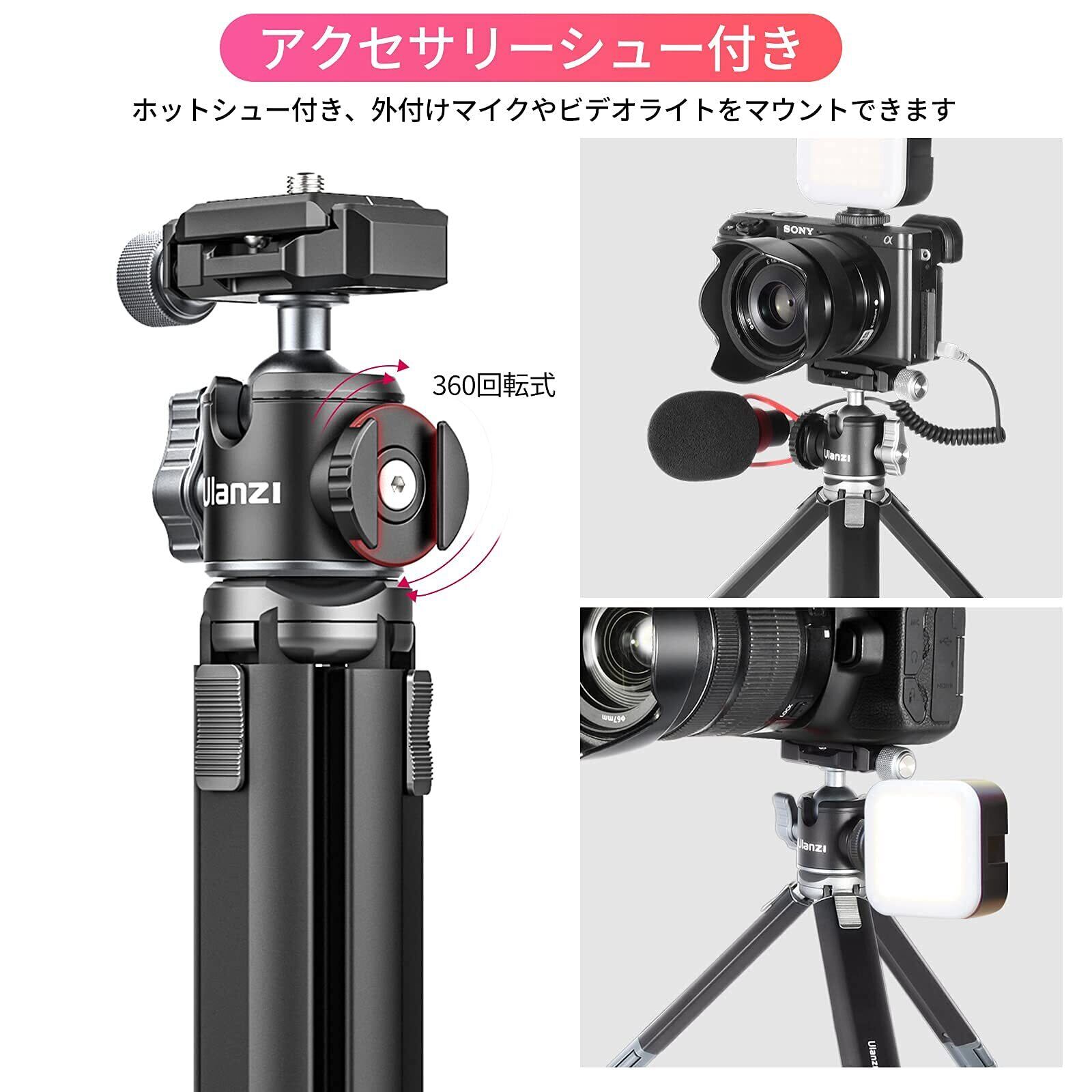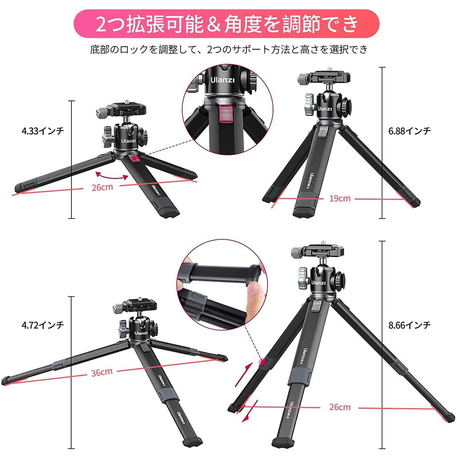【ulanzi ミニ三脚 雲台 & 製品】:クイックリリースクランプArca-Swiss規格に準拠する。品質、万が一製品に関する問題ありましたら、お気軽にカスタマーサポートまでご連絡下さい。パッケージ内容:三脚+雲台
