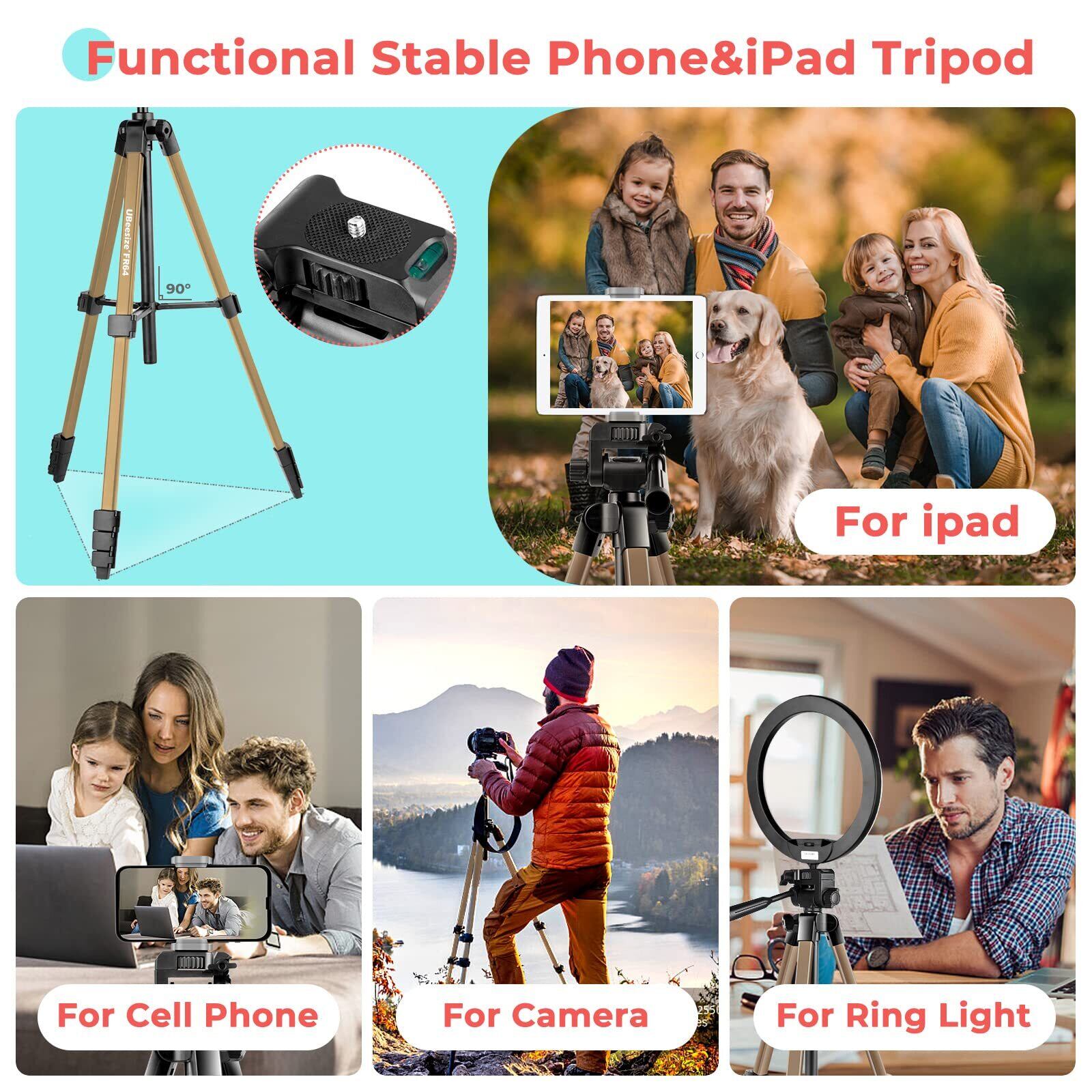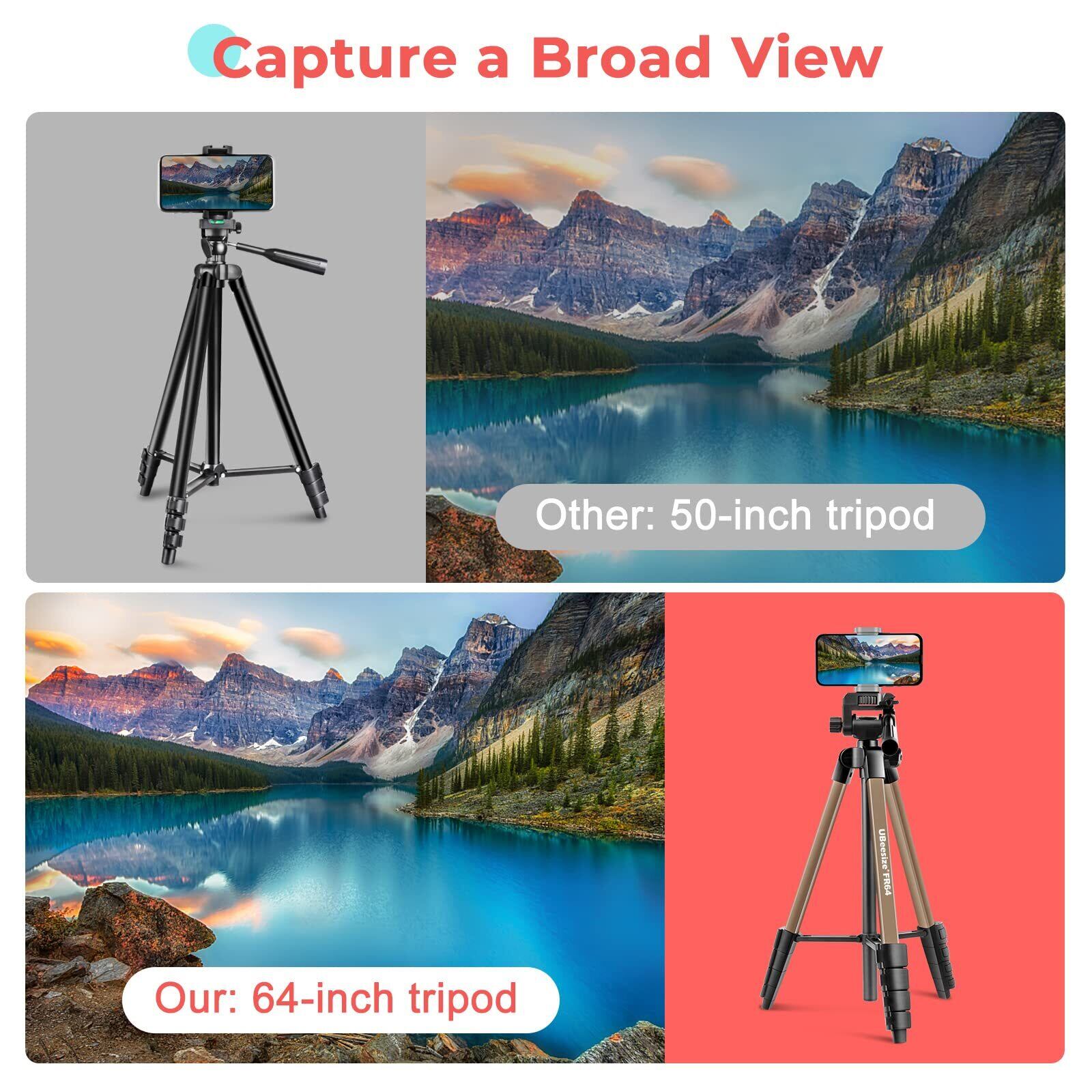 ■【3WAY雲台搭載で多彩な撮影スタイル!】UBeesizeの三脚は、スマホとタブレットのクリップ式デザインを採用しており、ビデオカメラや一眼レフカメラにも対応可能です。3WAY雲台を使用することで、撮影シーンに応じたさまざまなアングルを自在に実現できます。