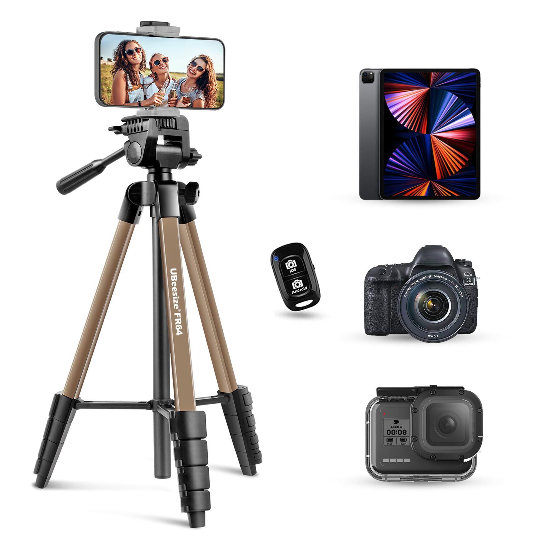 UBeesize三脚 スマホ 三脚/タブレット三脚 163cm三脚 Bluetoothリモコン タブレット/スマホクリップ式 ビデオカメラ 一眼フレ 3WAY雲台 さんきゃく スタンド 軽量 タブレット iPhone/Android/スマホ全機種適用(長163cm) ブラウン 適格請求書発行可