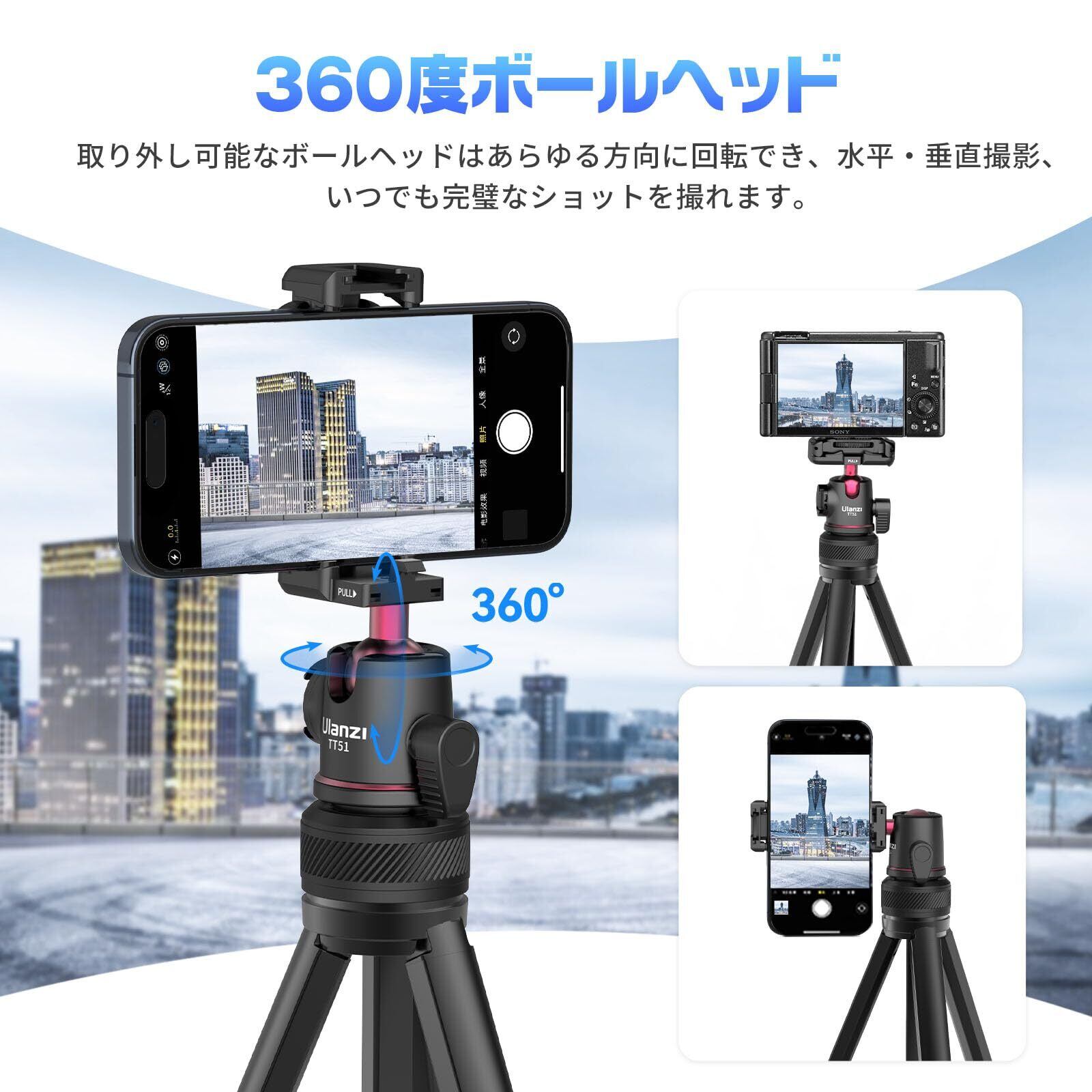 【2025最新】Ulanzi TT51 三脚 スマホ 三脚 カメラ 360度ボール雲台 5段階伸縮 アルミ製 スマホホルダー付き コールドシュー付き 耐荷重1.3KG トラベル三脚 コンパクト 軽量 安定 iPhone Android/カメラなどに対応