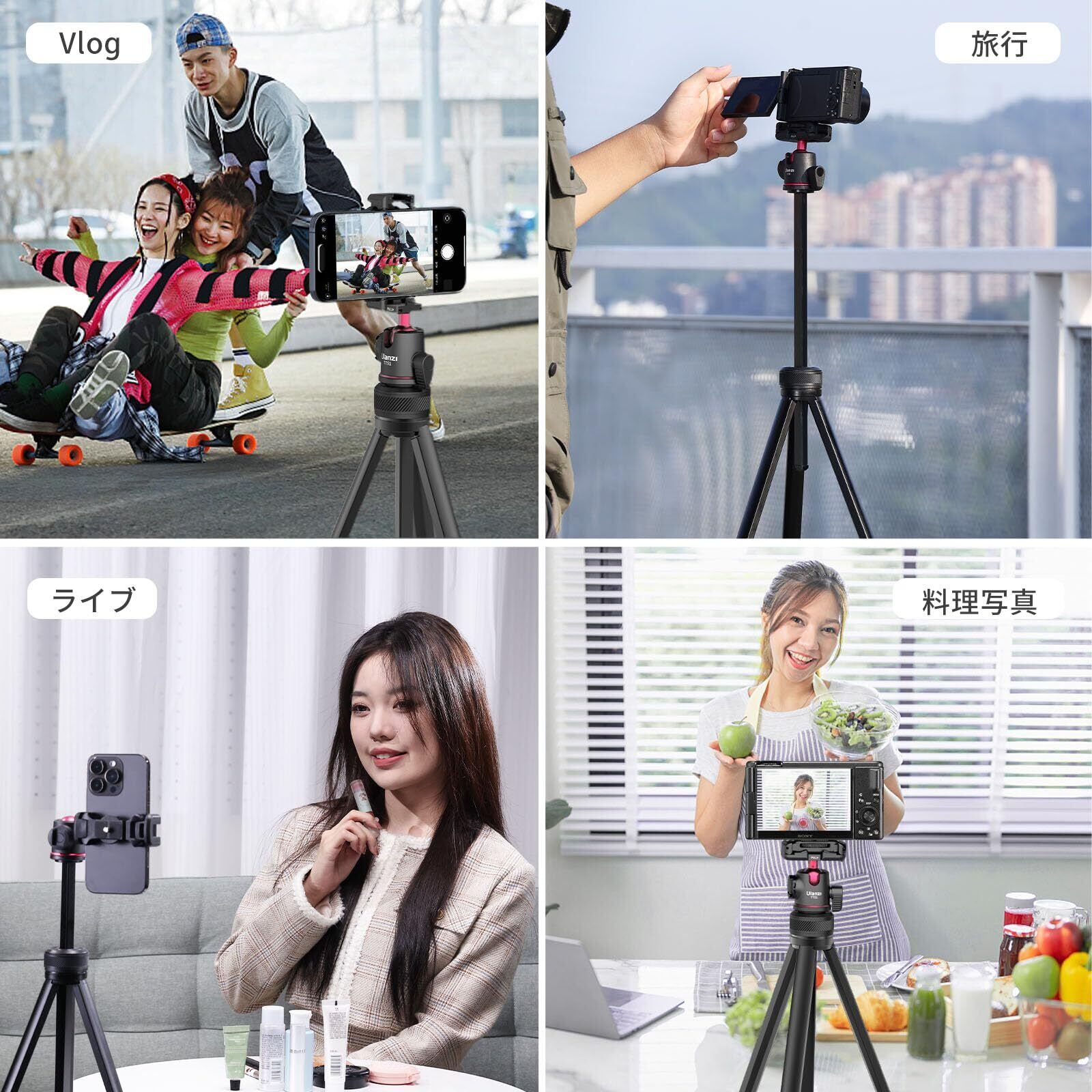 【バックル式5段階高さ調節】三脚はバックル式で、45cmから138cmまで簡単に調整できます。 センターコラムを高くすることで、さまざまな撮影高さを満たすことができます。三脚重さはわずか598g、収納後わずか47cmで、細身でバックパックに簡単に入れて持ち運び便利です。登山、 旅行、運動会、写真撮影に最適です。