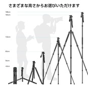 ■【4段階の高さ調整機能!】この三脚は4段階で伸縮が可能で、最低高さが約55cmから最大160cmまで対応します。さまざまな撮影シーンに応じて高さを自由に調整でき、お好みのアングルで撮影を楽しむことができます。