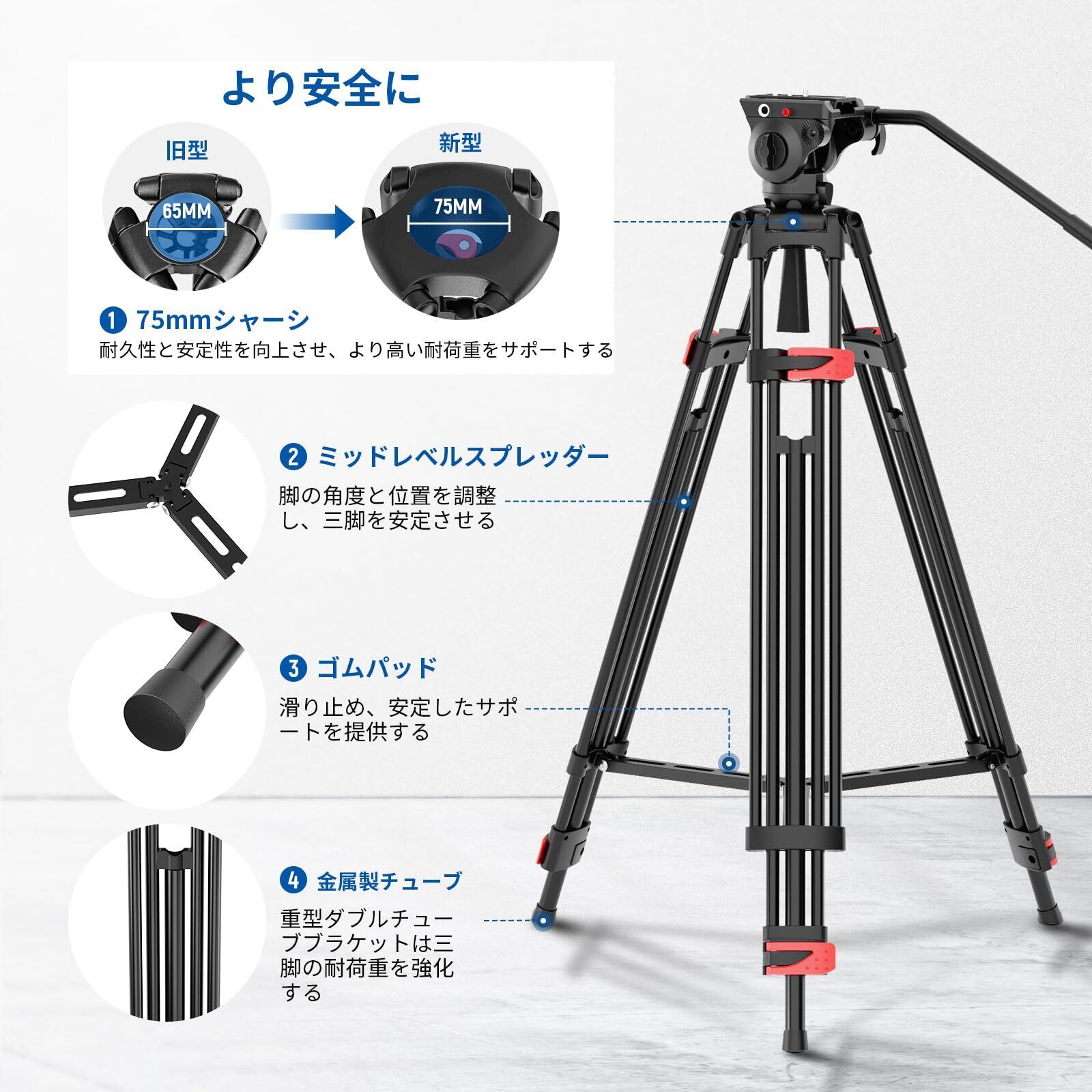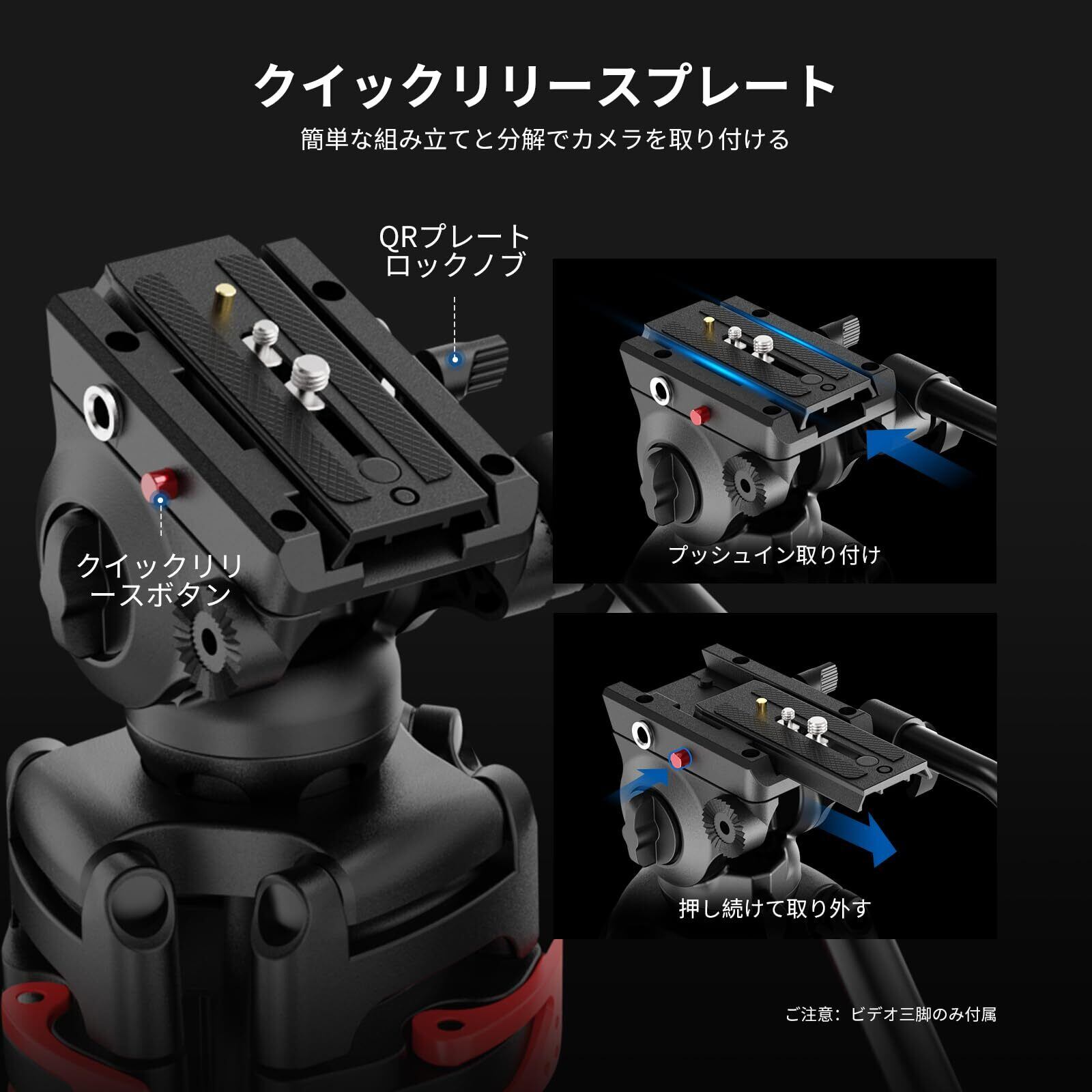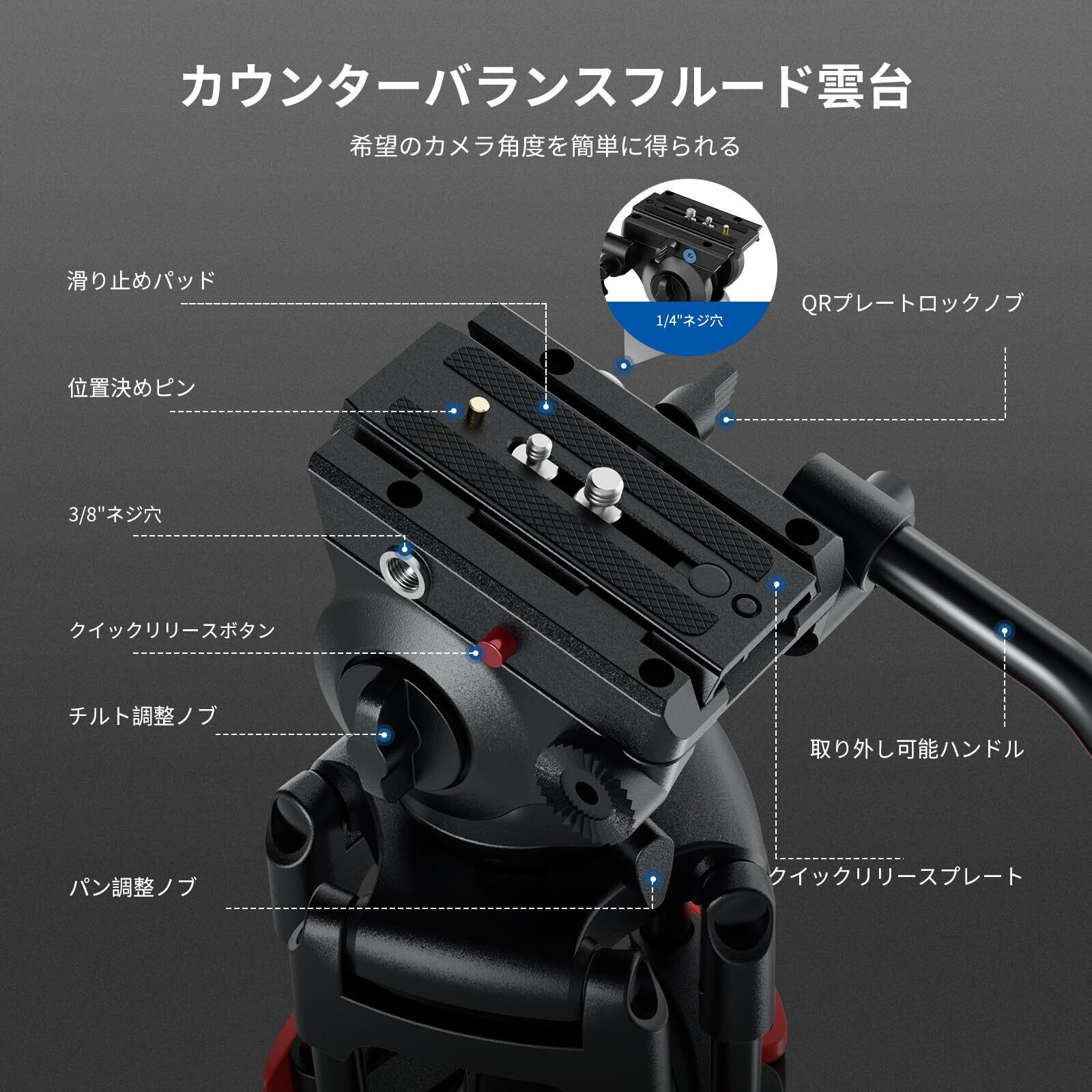 【限定セール】NEEWER Basic 187cm ビデオ三脚 ビデオ雲台付き 金属製 高耐久 カメラ三脚 ダイナミックダンピング/ミッドレベルスプレッダー/クイックリリースプレート DSLR 一眼レフ/ビデオカメラに適用 最大荷重8kg TP37
