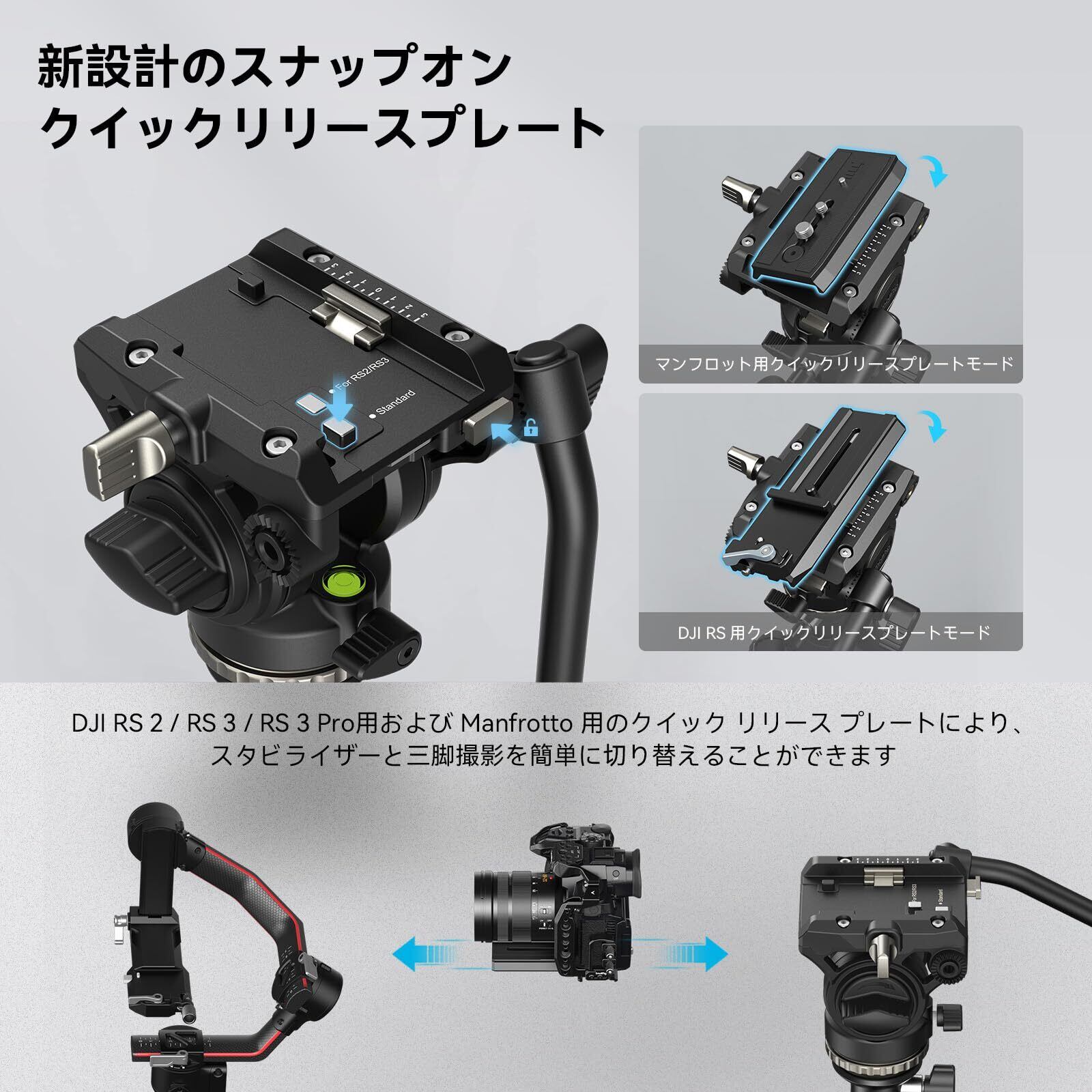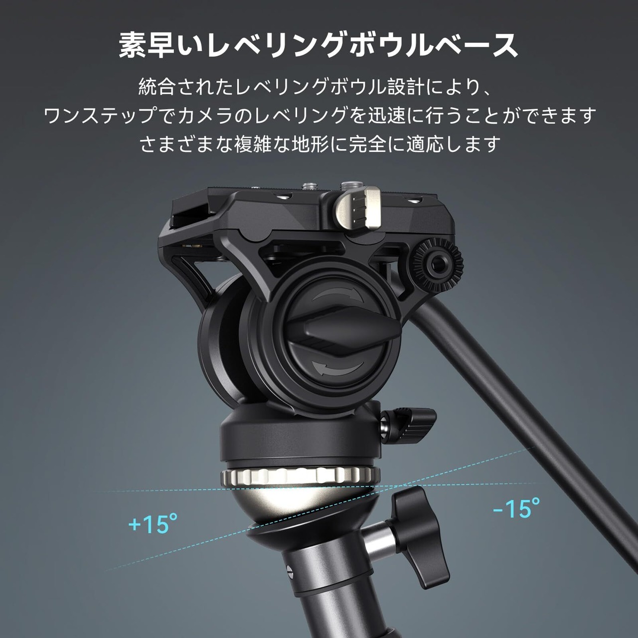 ■【多機能なデザインで撮影をサポート!】レベリングベース付きのビデオ雲台は、パンやティルトの動きがスムーズで、希望の角度での撮影が容易です。また、中心軸反転機能により、あらゆるアングルからの撮影が可能です。クリエイティブな表現を引き出します。