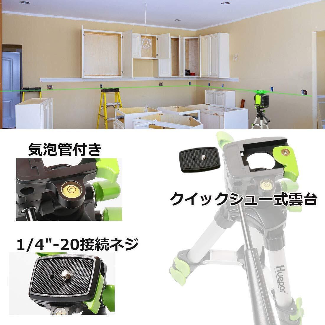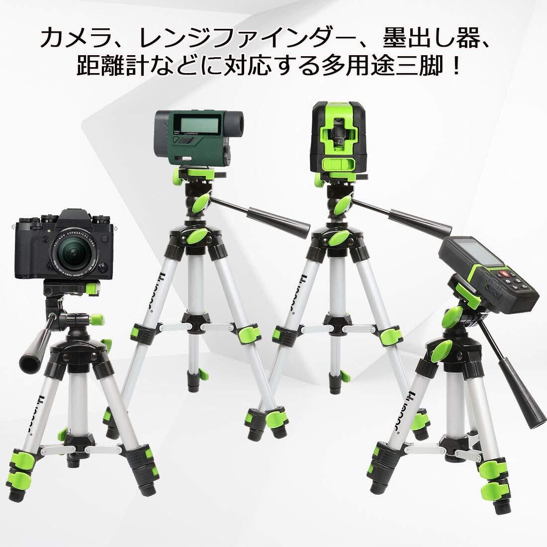Huepar レーザー墨出し器用 カメラ用 エレベーター ミニ三脚 3WAY雲台 折りたたみ可能 調節可能 旅行用 水準器付き アルミ 耐荷重3KG 収納バッグ付き 接続ネジ径1/4インチ TPD05