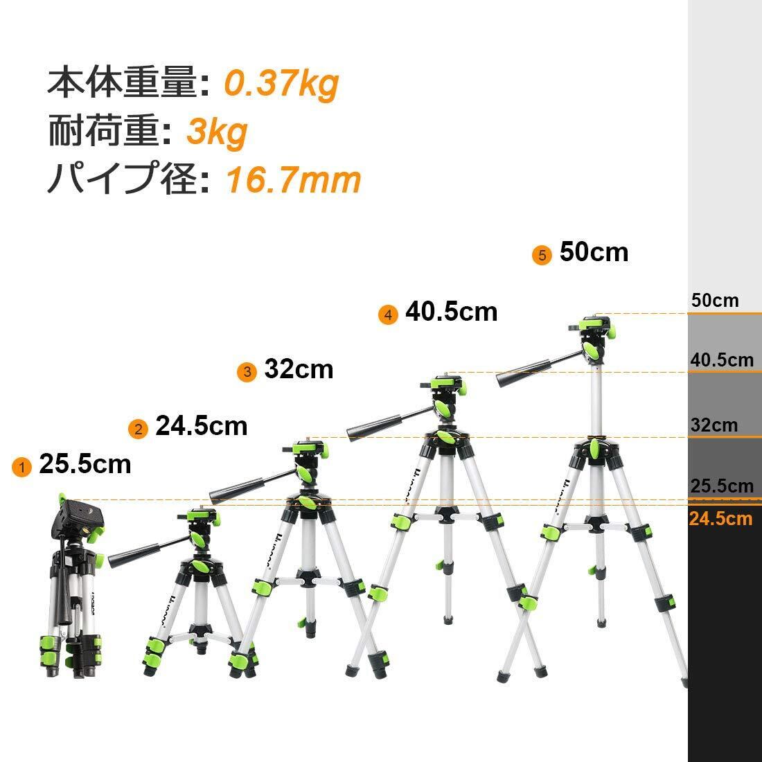 ■【多用途に対応する耐荷重!】最大3kgまでの機器を支えることができ、デジタル一眼レフカメラやビデオカメラ、さらにはスマートフォンにも対応。この三脚を使用することで、あなたのクリエイティビティを引き出す多様な撮影スタイルが実現可能です。