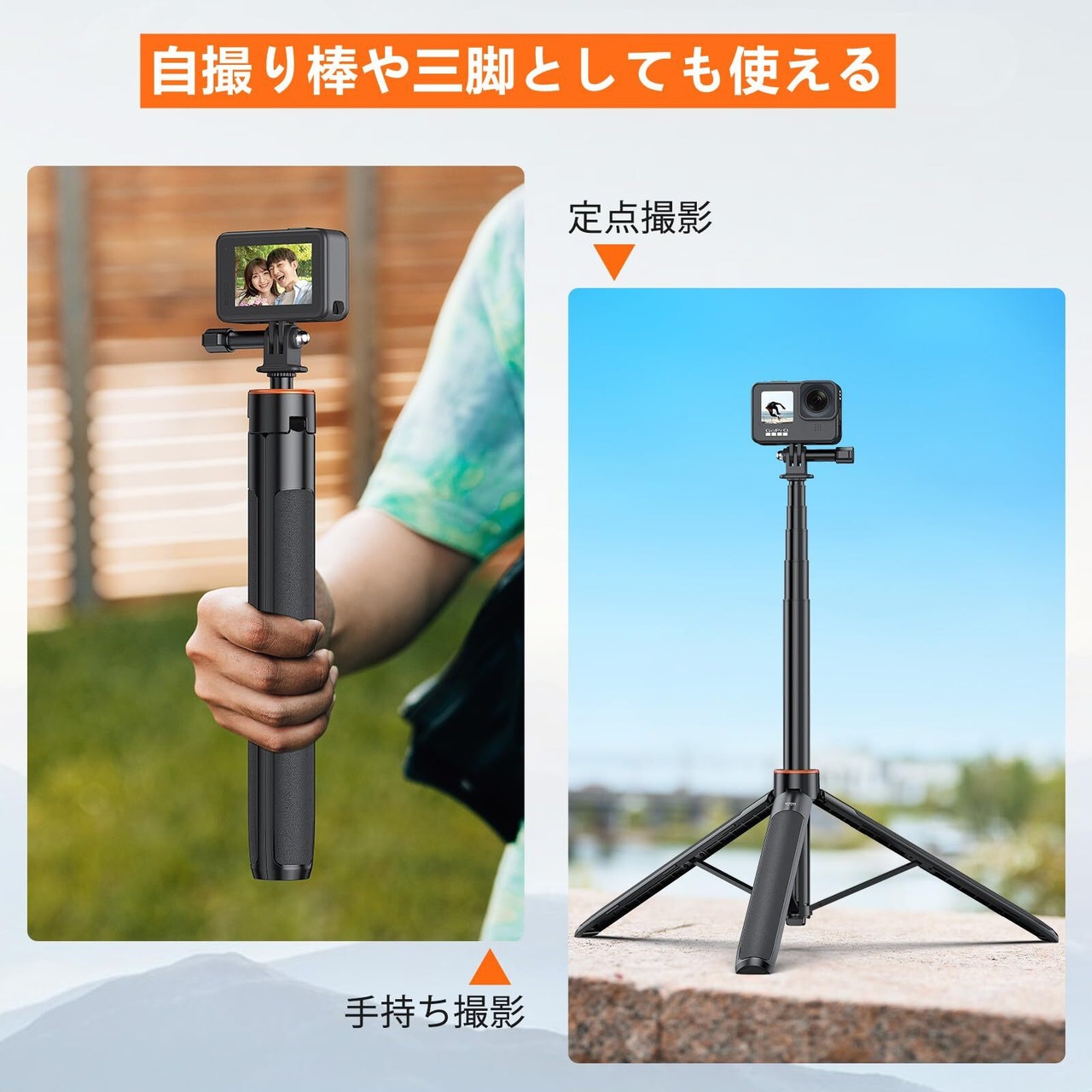 VRIG insta360 自撮り棒 アクションカメラ 三脚 140cm延長 6段階伸縮延長ポール 自撮り棒 コンパクト 持ち運び便利 dji osmo 360、DJI Osmo Action 5 pro/4/3、DJI Osmo Pocket 3、Insta360 X5/X4 /Ace Pro/Ace Pro 2、GoPro Hero13/12/11/10/9 など対応 TP-21