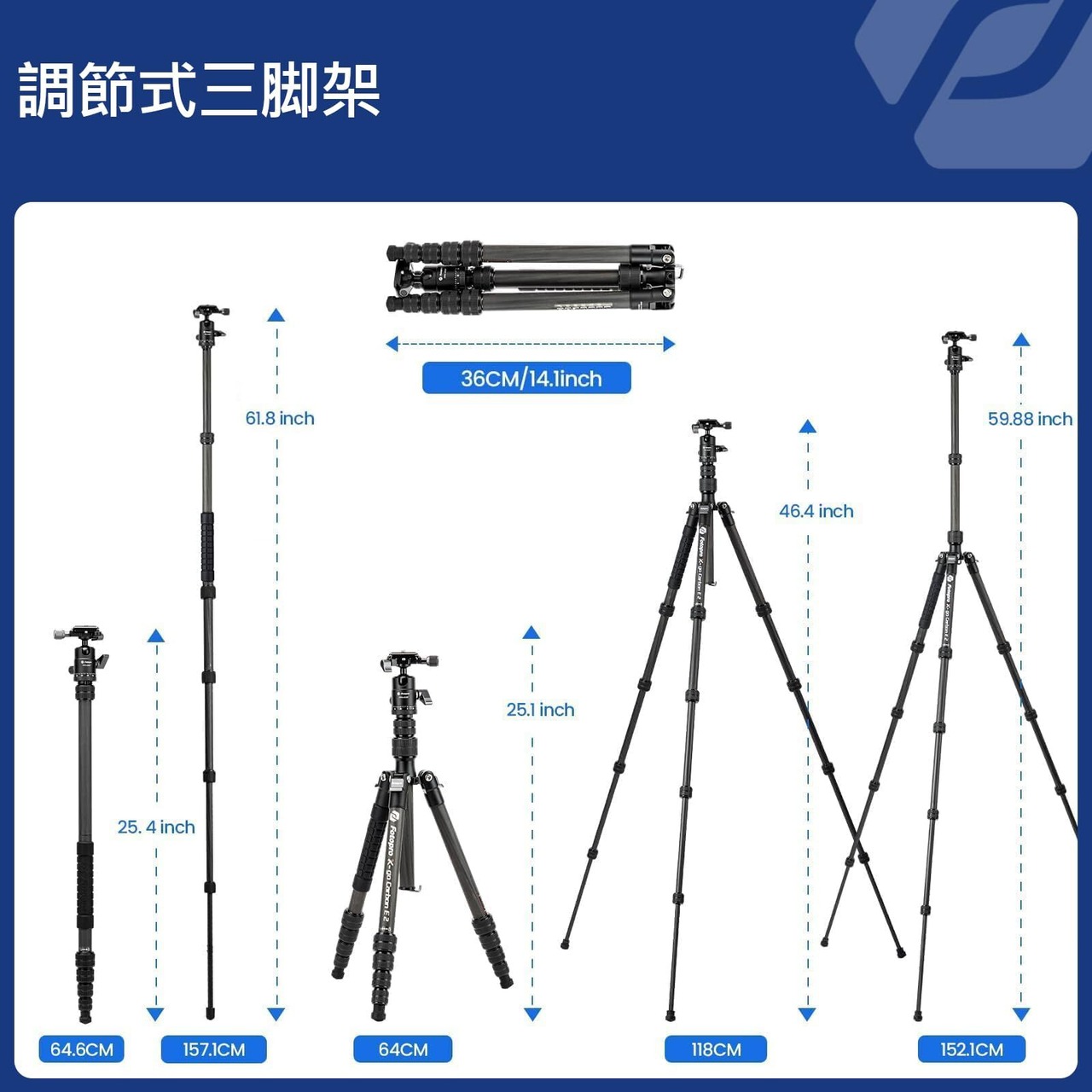 ■【最大152cmの高伸縮性!】Fotoproの旅行用三脚は、最大152cmの高さまで調整可能で、さまざまな撮影ニーズに対応します。特に広角ショットや高いアングルでの写真撮影に最適です。あなたのクリエイティビティを最大限に引き出す一品です!