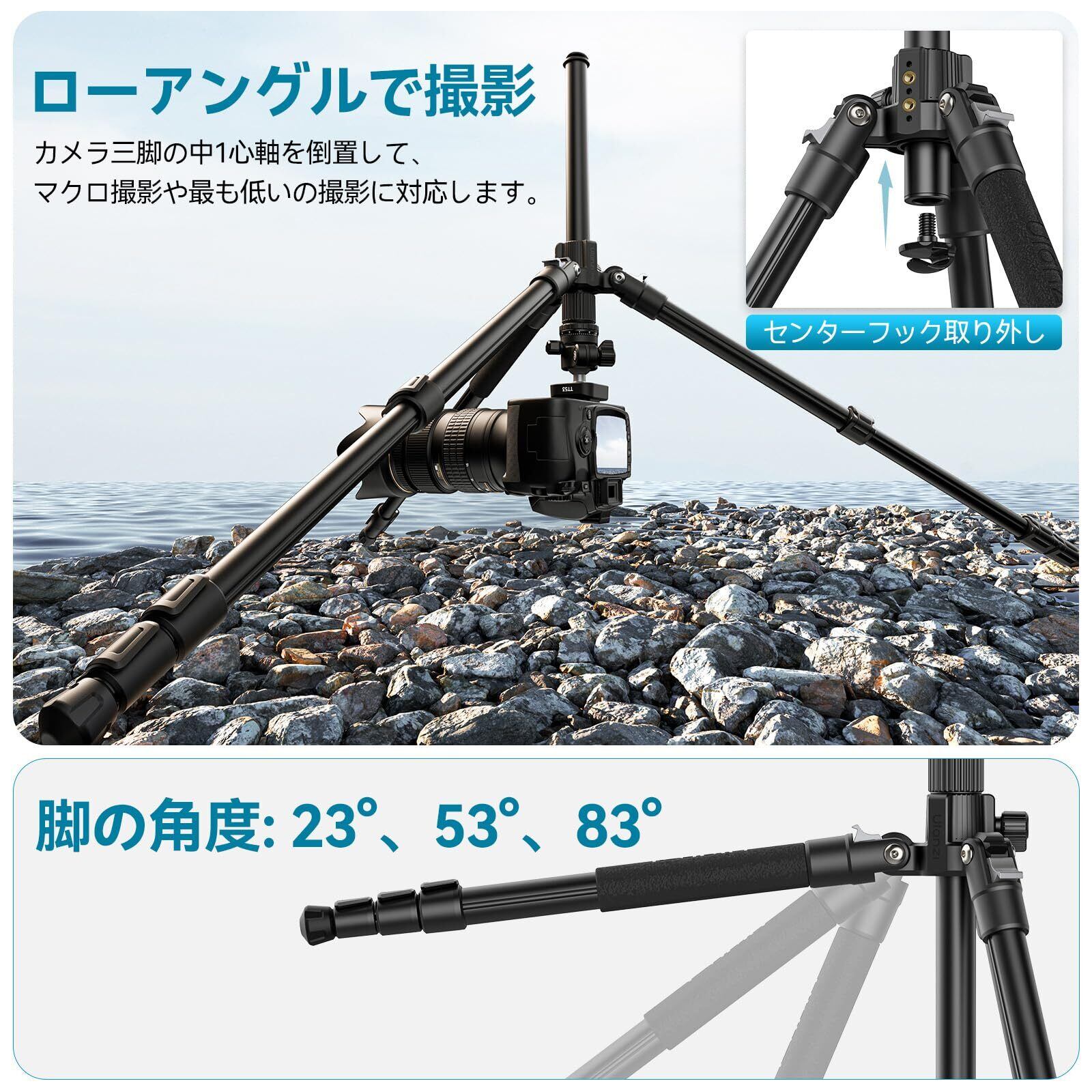【三脚と一脚が2-IN-1に】三脚の脚を取り外して一脚に変型可能。一脚時は中型デジタル一眼レフ、ビデオカメラ、望遠レンズにも対応、登山用のステッキとしてもご利用頂けます。【中心軸反転】三脚のセンターポールを取り外して反転することで、ローアングル、最も低いアングルで撮影を実現します。草、アリ、昆虫、湖の底などマクロ撮影したいときに役たちます。