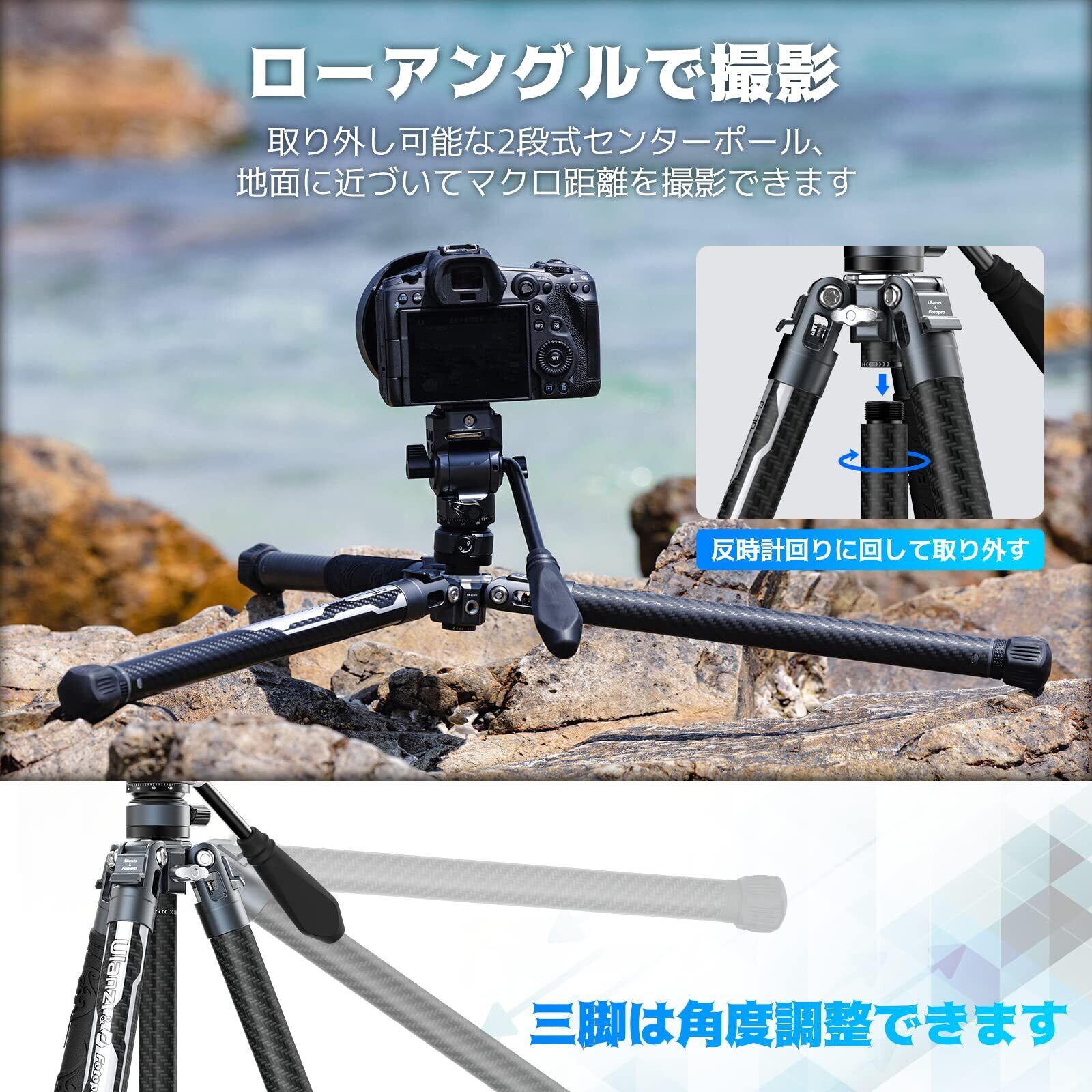 【ローアングルで撮影】Ulanzi トラベル三脚は取り外し可能な2段式センターポール、地面に近づいてマクロ距離を撮影できます 。カメラ三脚はマルチアングル調整し、より柔軟に撮影することもできます。重力フック付き、重力を掛けて、三脚の安定性をアップします。スタンドの脚には 2つの1/4インチネジ穴があり、マジックアーム、スマホ、モニター、ビデオライトなどの外部デバイスを拡張するための様々なニーズを満たすことができます。【メーカー&パッケージ内容】商品の品質には万全を期しておりますが、万が一不具合がございましたら、お気軽にメールで弊店にご連絡ください。24時間以内対応致します。品質に問題がある場合は交換できます。パッケージ:Ulanzi F38カーボン三脚*1、ケース*1、F38クイックリリースプレート*1、MH-2Lボールヘッド*1、スマートフォンホルダー*1、レンチ*3、ユーザーマニュアル*1。すべてのDSLRカメラ、ビデオレコーダー、キャノン、ニコン、ソニー、オリンパス、富士、ペンタックスなど対応。