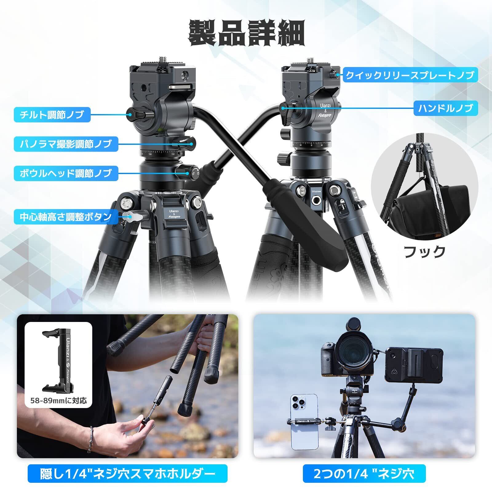 Ulanzi F38 カーボン三脚 クイックシュー カメラ三脚 5段調節 360°自由ボール雲台 パノラマ撮影可能 スマホホルダー付 耐荷重10kg スマホ三脚 ウルトラロック式 トラベル三脚 一眼レフ/カメラ/ミラーレス/ビデオカメラ/アクションカメラ/望遠レンズ/スマホなど対応 収納ケース付き コンパクト 取扱説明書付き F38