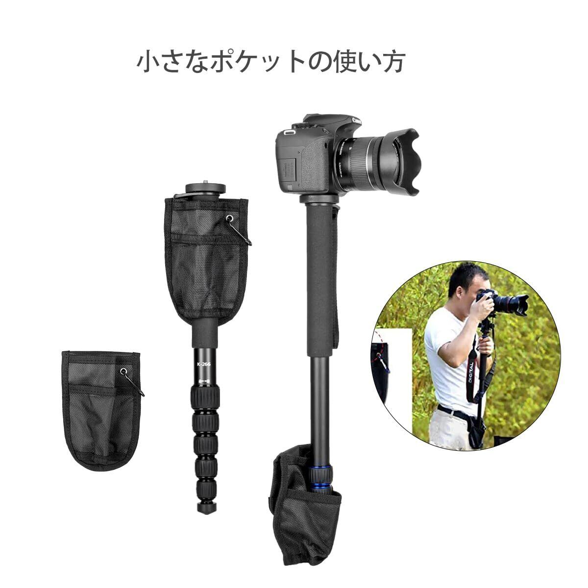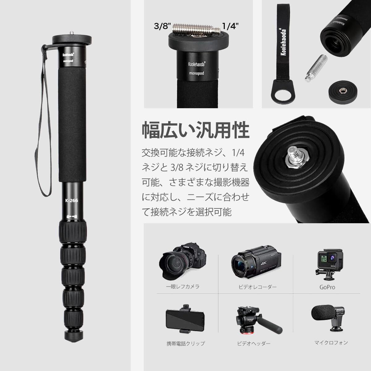 Koolehaoda 一脚 カメラ用 自立式 アルミ製 6セクション伸縮可能 全高156cm 収納長さはわずか38cm コンパクト 軽量 旅行用一脚 一眼レフ ビデオカメラ 望遠レンズ用、耐荷重10 kg -(黒)