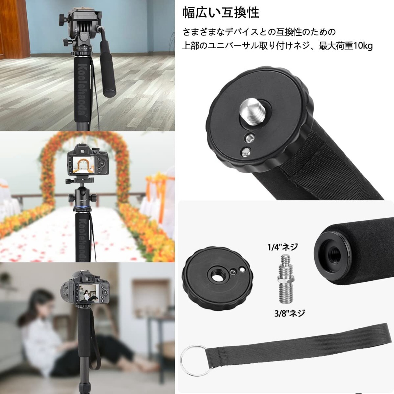 ■【旅行に最適な軽量設計!】Koolehaodaの一脚は、カーボンファイバー製で非常に軽量ながら、10kgの耐荷重を誇る優れた安定性を持っています。旅行やアウトドアでの撮影でも気軽に持ち運べることで、あなたの撮影をサポートします!