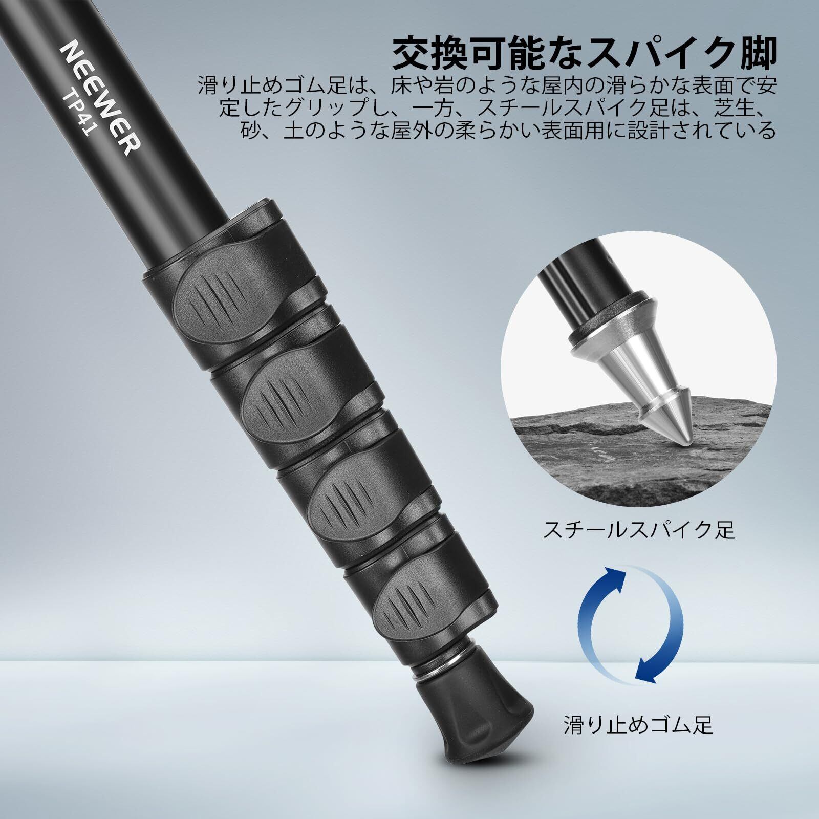 NEEWER カメラ一脚 155cm アルミ合金製 ポータブル コンパクト 便利 軽量 旅行用 カメラスタンド トラベル一脚 一脚ポール 旅行一脚 自撮り棒 1/4"3/8"ネジアダプター付き DSLRカメラ/ビデオカメラ用 最大荷重8kg TP41